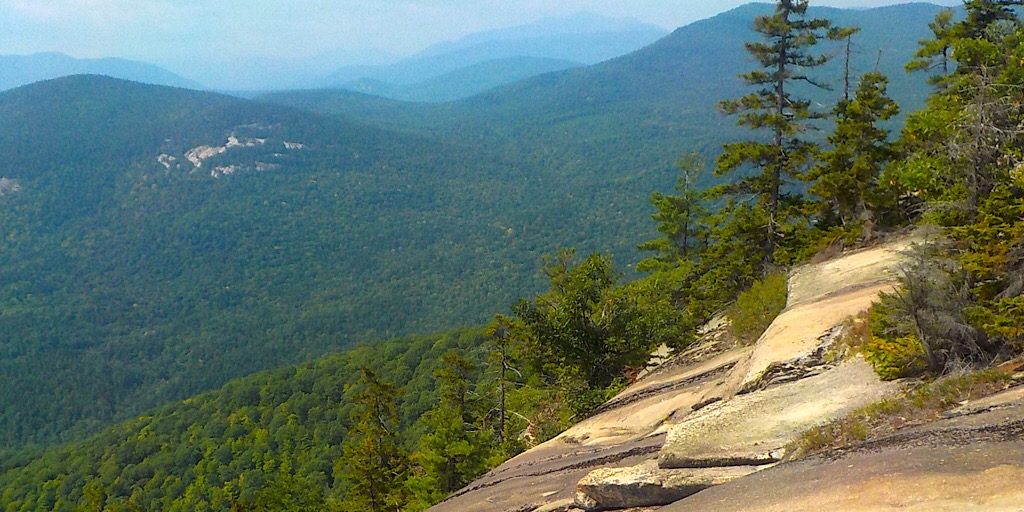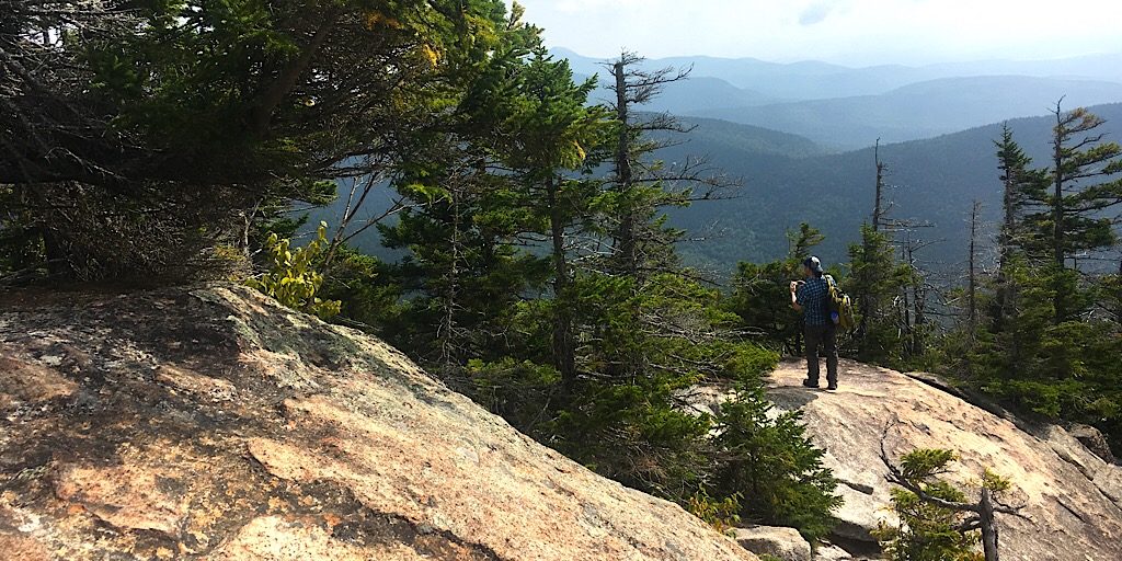 Clint enjoying the ledges on Mt Whiteface. Photo by Jean.