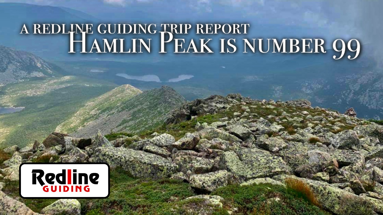Hamlin Peak of Mt Katahdin is number 99/100 for our oft-returning guest working on his New England Hundred Highest. There all along has been Redline Guide Ken Hodges, helping out, showing the way, keeping things safe and simple. Baxter Peak (also Mt Katahdin), Coe, Fort, and North and South Brother, all done, Hamlin Peak (4756′) was the last hold out in Baxter State Park. The Rangeley area is likewise done, minus one peak: Boundary. The Covid-closed border between Canada and the United States got in the way of obtaining that now-lone sentinel of the the list, but stay tuned. For now, enjoy the video of this latest adventure, images supplied by Ken.