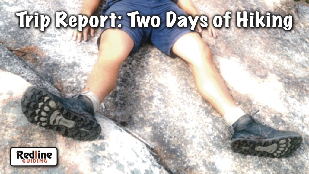A California couple checking out our neck of the woods was looking for a couple days of hiking and found us through the concierge at the River Walk Resort at Loon Mountain — thank you! It was very short notice but we were able to accommodate this couple and their dog. We lead two trips. The first was on the Welch-Dickey Loop and that was led by Redline Guide Howard Aronson. The second was to Mt Crawford with the option to continue to Stairs Mountain and that was led by Redline Guide Jeffrey Shutak. Howard and Jeffrey both contributed photos to the following photos compilation video: