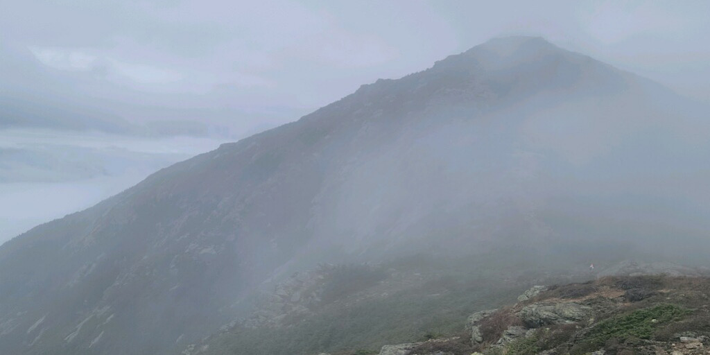 Due to the forecast we weren’t certain which route to take but late on Sunday I checked again and the forecast changed with little to no rain. So we made the decision to hike the ridge. We arrived at the trailhead at nine and there were only two other cars in the lot. I guess that’s one of the advantages to hiking in questionable weather on a Monday. We did encounter a group of seven from California who had flown out here to hike for three days, staying at the Greenleaf Hut overnight for one.