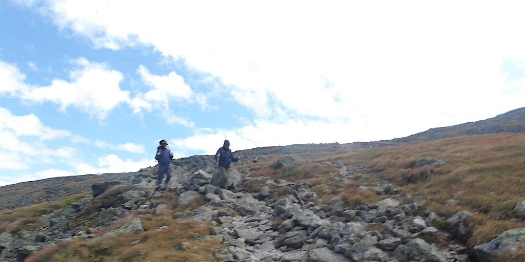 A New York City couple looking for a private tour (hence no guest images) wanted the 6288′ Mt Washington. Assigned to lead them was Redline Guide Pat Ferland and lead them he did. Not only did they summit the Rock Pile, but expanding their loop (since they were feelin’ it) he also took them onto the 5531′ Mt Clay. Interestingly, even though the lovely and very highly regarded Mt Clay is well over 5000-feet, it doesn’t count as a New Hampshire 4000-footer due to its lack of prominence — which must be 200-feet or greater — on the Mt Washington end of the mountain. The extra energy they showed must have been from the snacks they ate at the hut and the chili they consumed at the summit. A summit, curiously, with no line we might add. Weird, right? Here are a few photos of their trip.