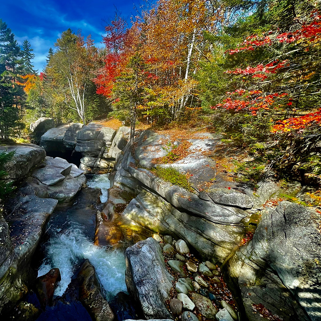 More and more people looking for a fun and relaxed hike/walk/tour in the White Mountain National Forest and general area are turning to our 2-3 hour “Tourist Tours” as we call them. As a way of maximizing ones time while visiting, a tour guide can really add to the value, filtering out the best for our guests and setting aside the rest. That’s what Redline Guide Mike Cherim just did for a couple from Florida. Together, in the strong sunshine and heat, Mike showed them the best of what Crawford Notch has to offer. Here are a few photos of the morning, complete with fire-filled trees ablaze in the colors of fall. Stunning! The couple, to no surprise, fell in love with New Hampshire.