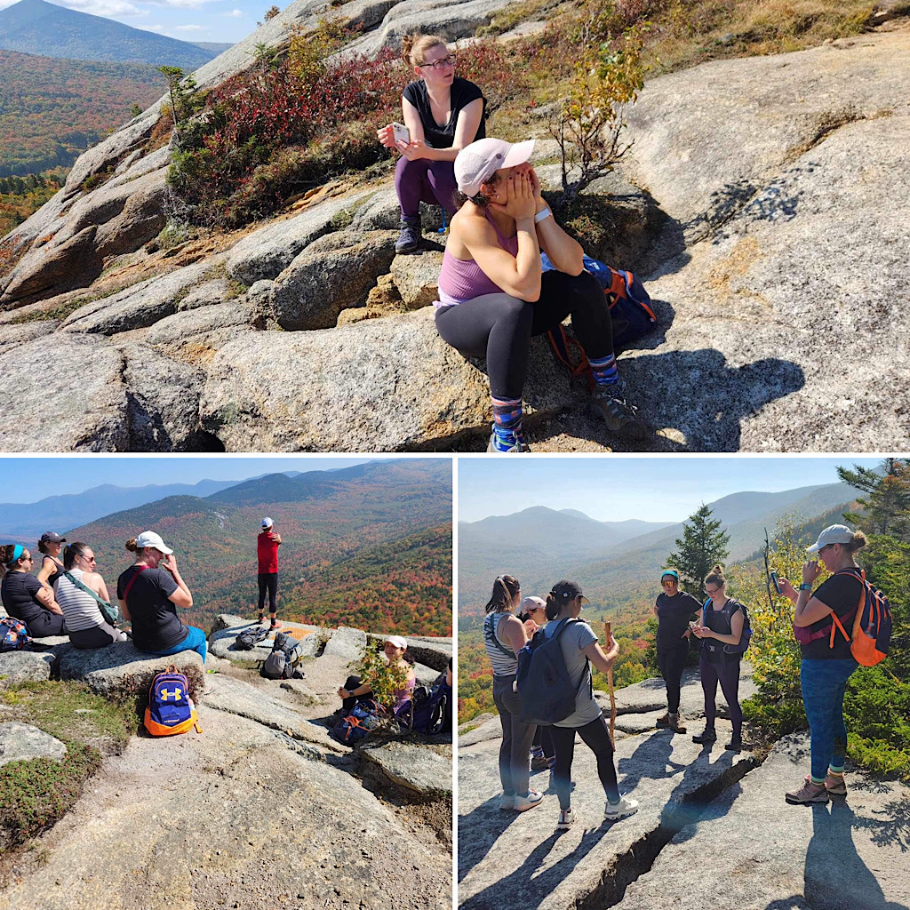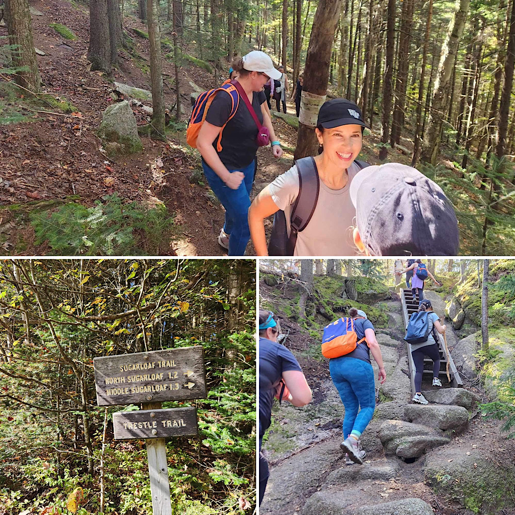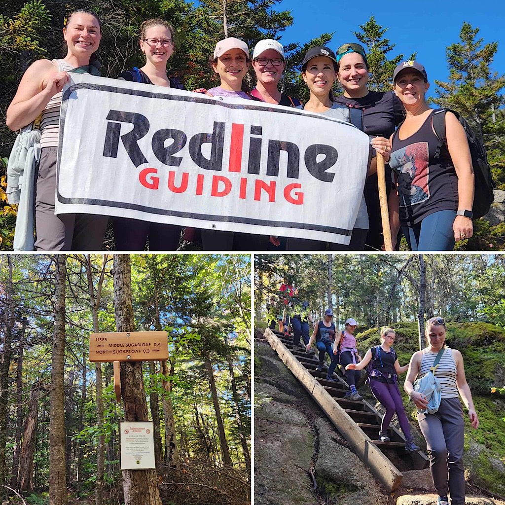 There is therapy in occupation and it’s serious business — for some. As Mr. Rogers once noted: “Play is often talked about as if it were a serious relief from learning. But for children, play is learning. Play is really the work of childhood.” Those in the know, those whose occupation it is to offer therapy of the occupational sort, for kids, love to play and wanted to play in our playground. And we wanted to help out. A half day hike was in order and the Sugarloaves were selected as the stage. Lots of options for groups. That was the thinking of Redline Guides Howard Aronson and Chase Hall who led this larger group. Here are some photos.