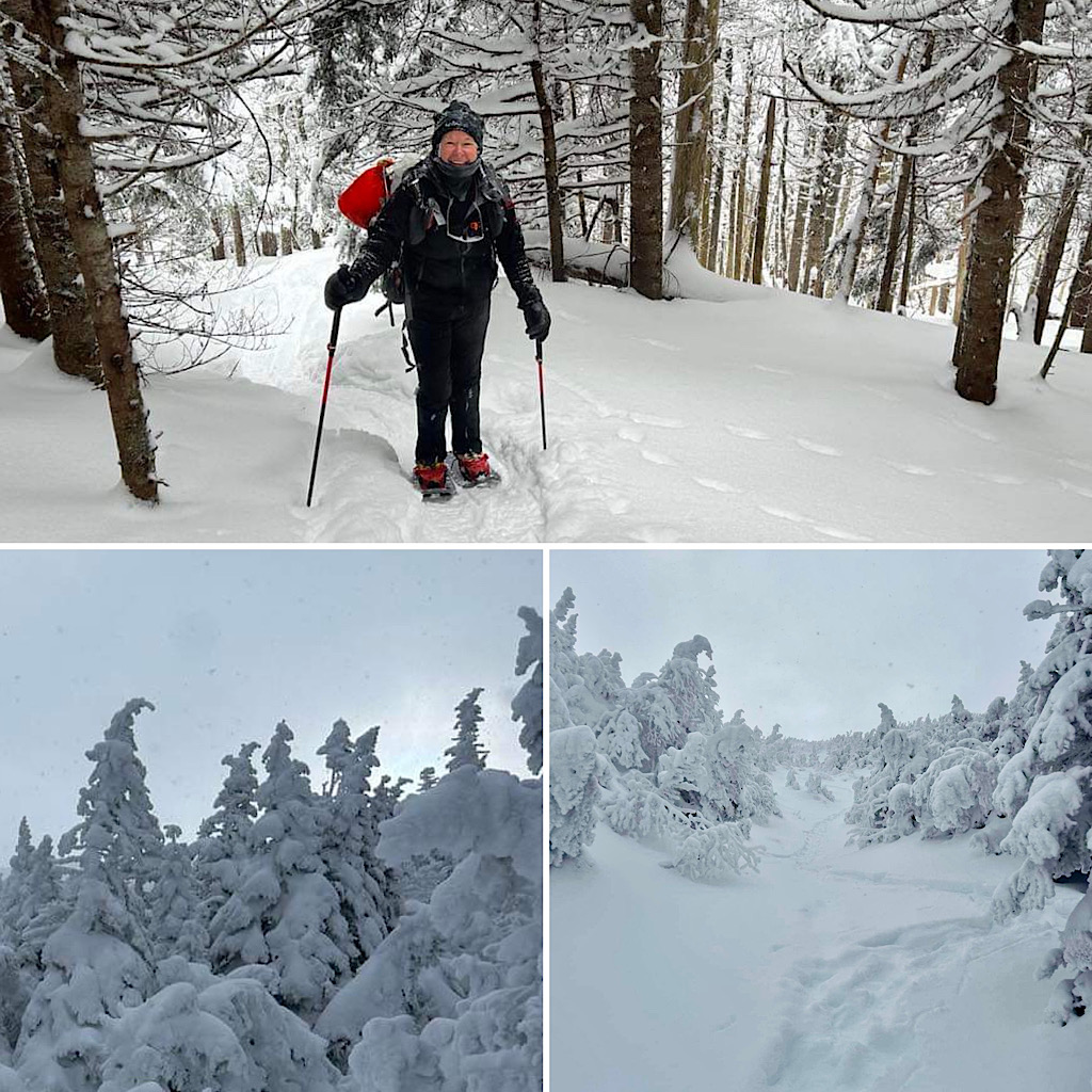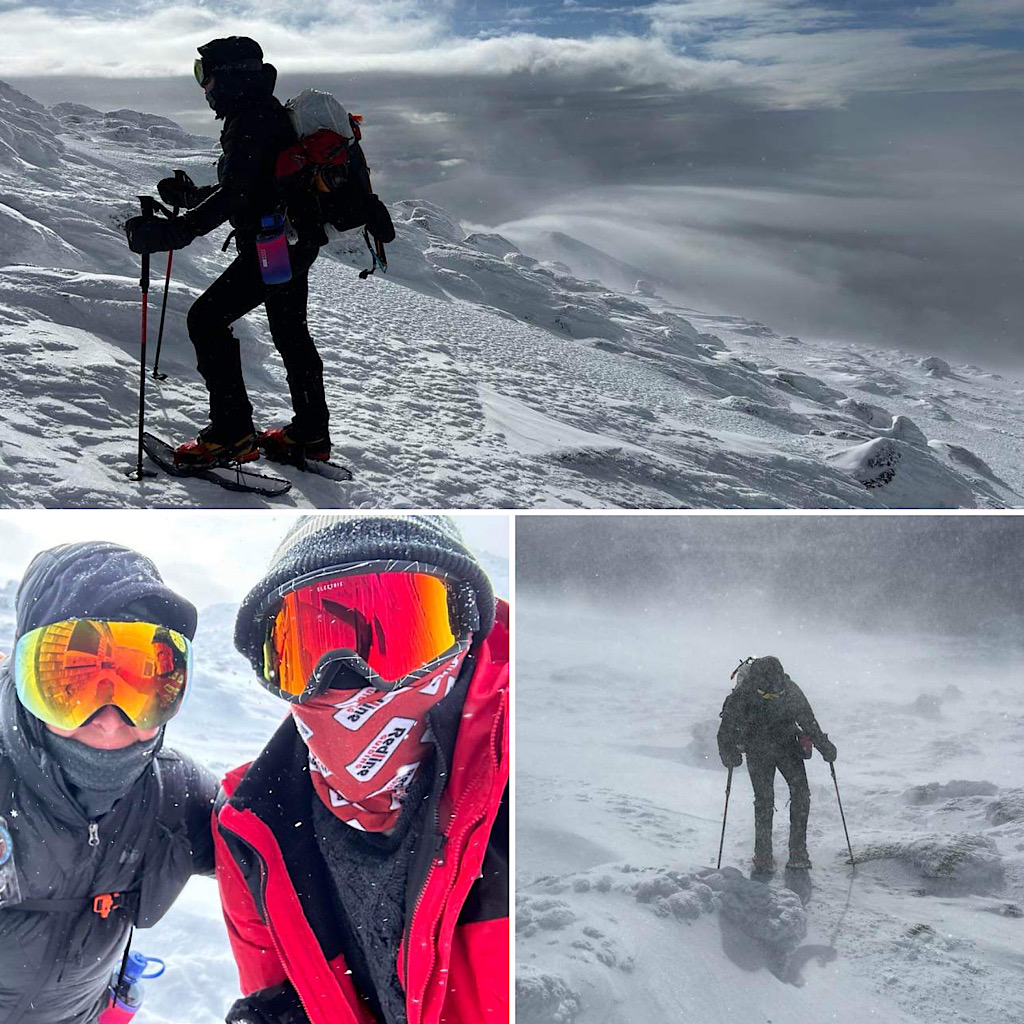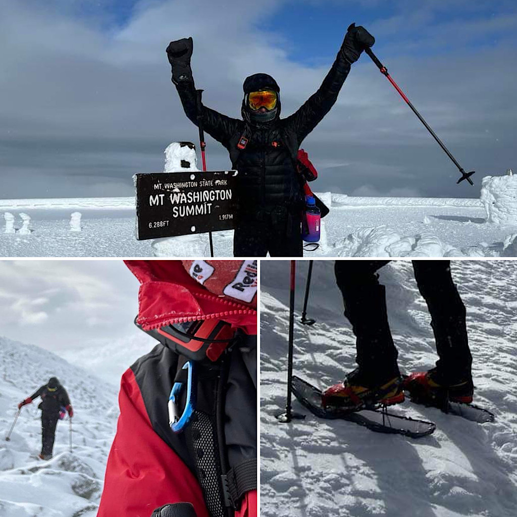 The team caught a break, however. Granted, it was still brutally cold up there, but a more doable cold. Proven, after all, in that they did it. Our guest collecting her 8th 4000-footer of out the 48. Chase noted others were on the summit enjoying the amazing albeit wacky Mt Washington weather. Even the winds cooperated coming in less than forecast. Everyone, he stated, was super friendly (we think Chase brings it out in them). People were taking turns photographing each other at the uncrowded summit. Chase report having an exceptional time!