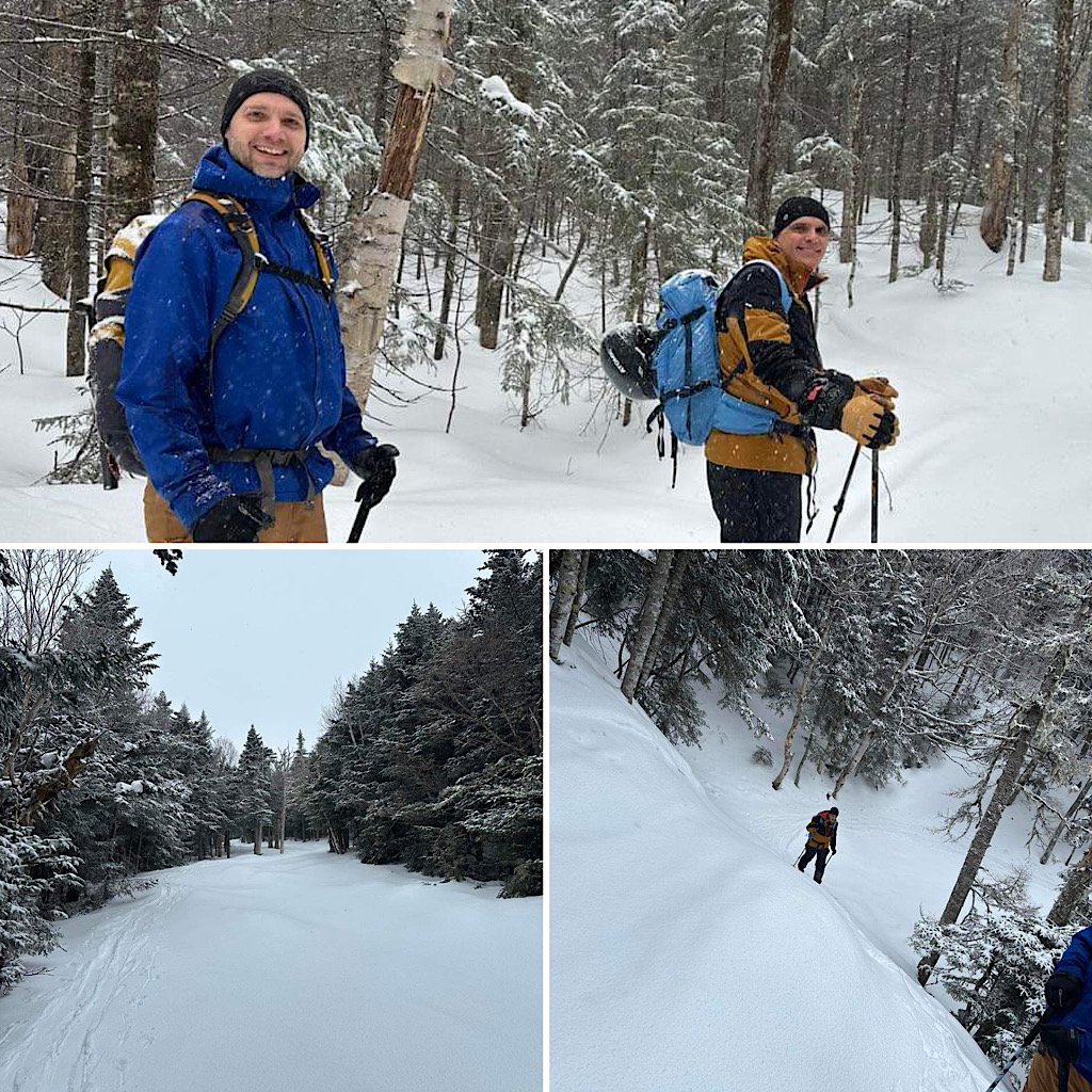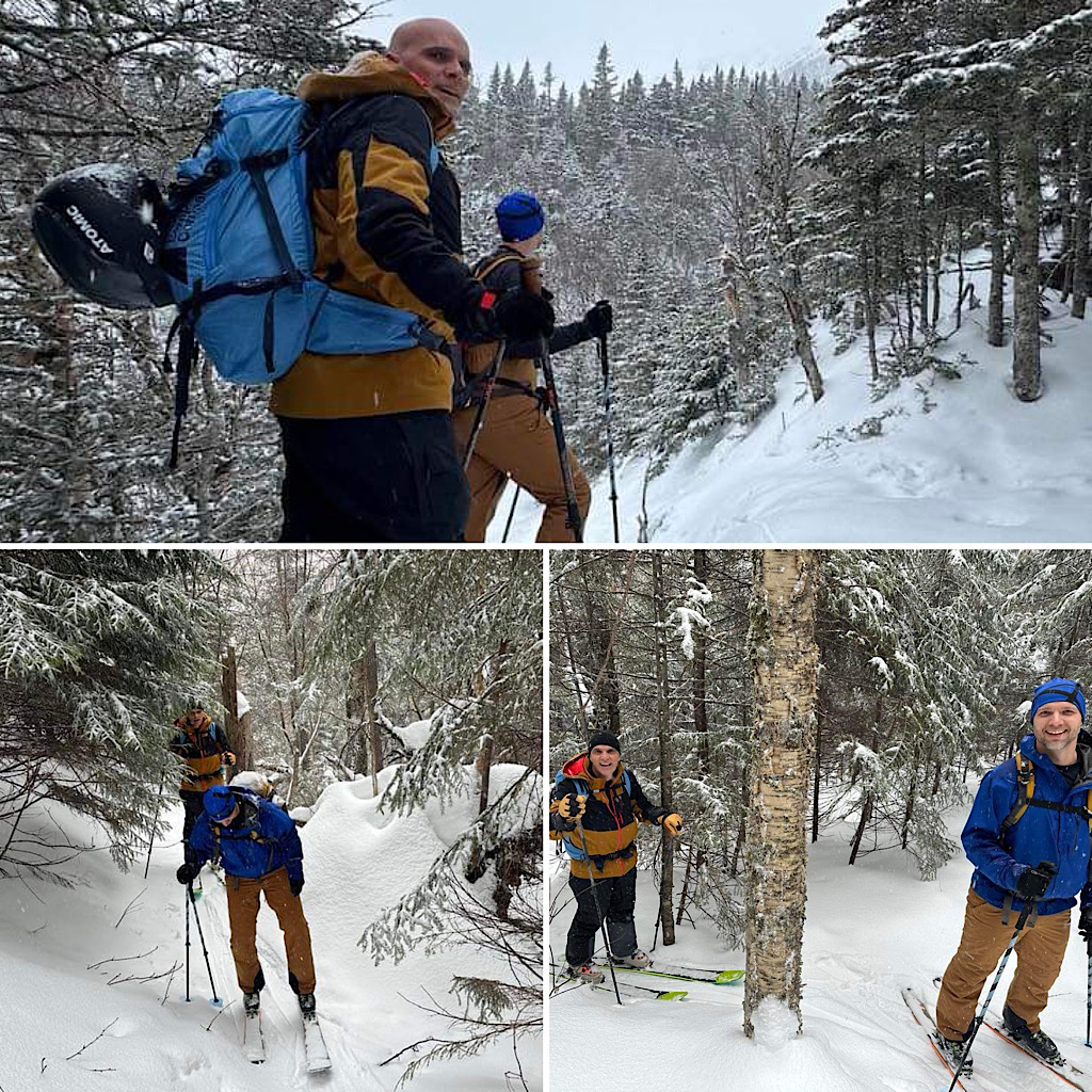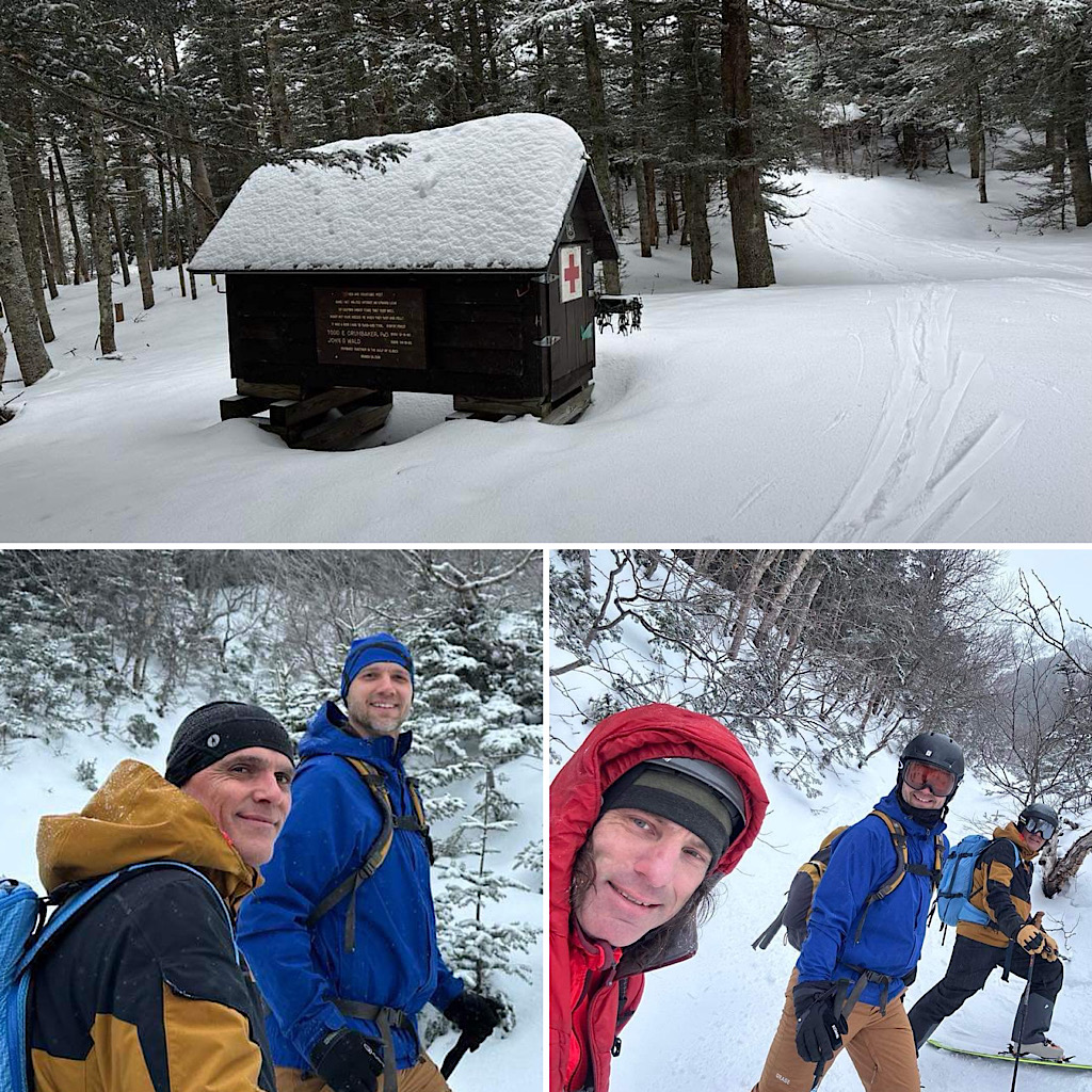 The team entered Main Gully but it was tight. Avalanche conditions stayed in the green throughout the day, but as they got higher up it became evident there was danger of long, sliding falls. With that potential hazard present, the team opted to turn from there and just ski out. Back in the woods conditions were great. “The snow was soft and the skiing fun!” Our friends from the north had a great time!