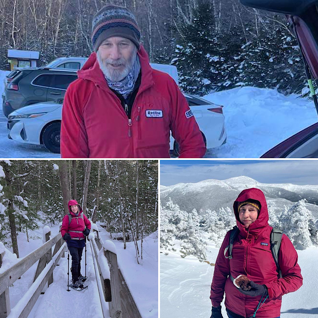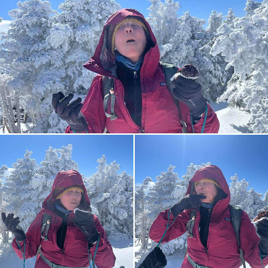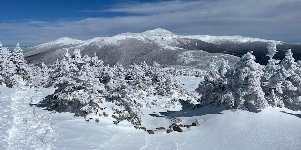 Originally the plan was for our guest to take our Winter Skills course and then snowshoe up Mt Washington the next day. As it turned out, though, a lower elevation objective like Mt Pierce was preferred instead thanks to a forecast of strong alpine winds. This peak, for those who don’t know, is one of the NH 4000-footers we and many others suggest starting on. No surprises allows one to focus on the amazing visuals and the fun.