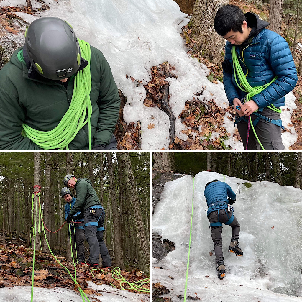 We had couple of fellows reach out looking to salvage their day. They had planned on coming up to do some ice climbing with a group but it ended up getting canceled as climbable ice is limited right now (that may change briefly, now with snow on its way — cross your fingers). Instead of ice climbing they opted for a Glacier Skills Course. This, we knew we could do. Where exactly was up in the air, but we knew in the worst case we had the okay to limit the class duration allowing for more time for remote access, if needed. This was unnecessary, though. Early in the day Redline Guide Pat Ferland scouted some likely spots nearer to our Intervale Basecamp and Worldwide Headquarters. Our glaciers aren’t hundreds of feet thick, more like tens of millimeters thick, but really, we’re limited to the surface in any case so there is effective training to be had. That said, our crevasses sure are different… a little like mixed climbs. Training was conducted on the “Cathedral Ledge Glacier.” There they worked on some mountaineering and glacier basics with the focus on traveling as part of a roped team. After that the team moved to the “North End Crevasse Field.” There they addressed crevasse rescue, haul systems, self-extraction on a near vertical crevasse wall, and more. Pat tells us that both students got a ton out of the day. We’re happy to be able to make our guests’ day worthwhile.