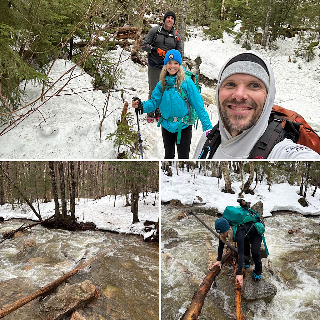 Based on Chase’s report, the team initially hoped to grab Willey, Field, and Tom, though not necessarily in that order. They started up Avalon Trail to the first crossing. With the rain and recent warm temperatures they knew the crossing would be tough, but they managed it. This was in part thanks to community help coming to the aid as one hiker gave Chase and crew some useful beta. The next crossing, however, which should have theoretically been smaller/easier just looked too dangerous.
