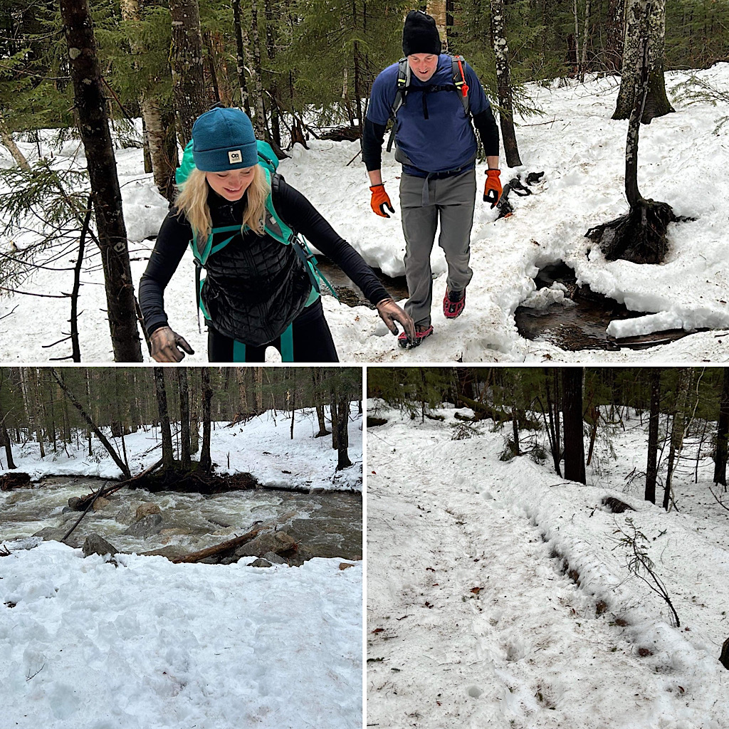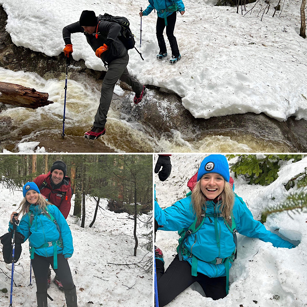 Flexing our flexibility is sometimes what we have to do. Flipping the safety switch, as needed. Here’s what happened: A returning guest reached out, so stoked about her recent winter hiking experience with us that she wanted to do it all again. This time, though, she also wanted to introduce her husband to the sport. Since Redline Guide Chase Hall led her last time, he was a natural for this round as well. There was some concern initially, about winter no longer being winter and all, as she wanted her husband to have an experience like her first one. But we know that that gem of a season has many facets. This was but one — and it’s still winter.