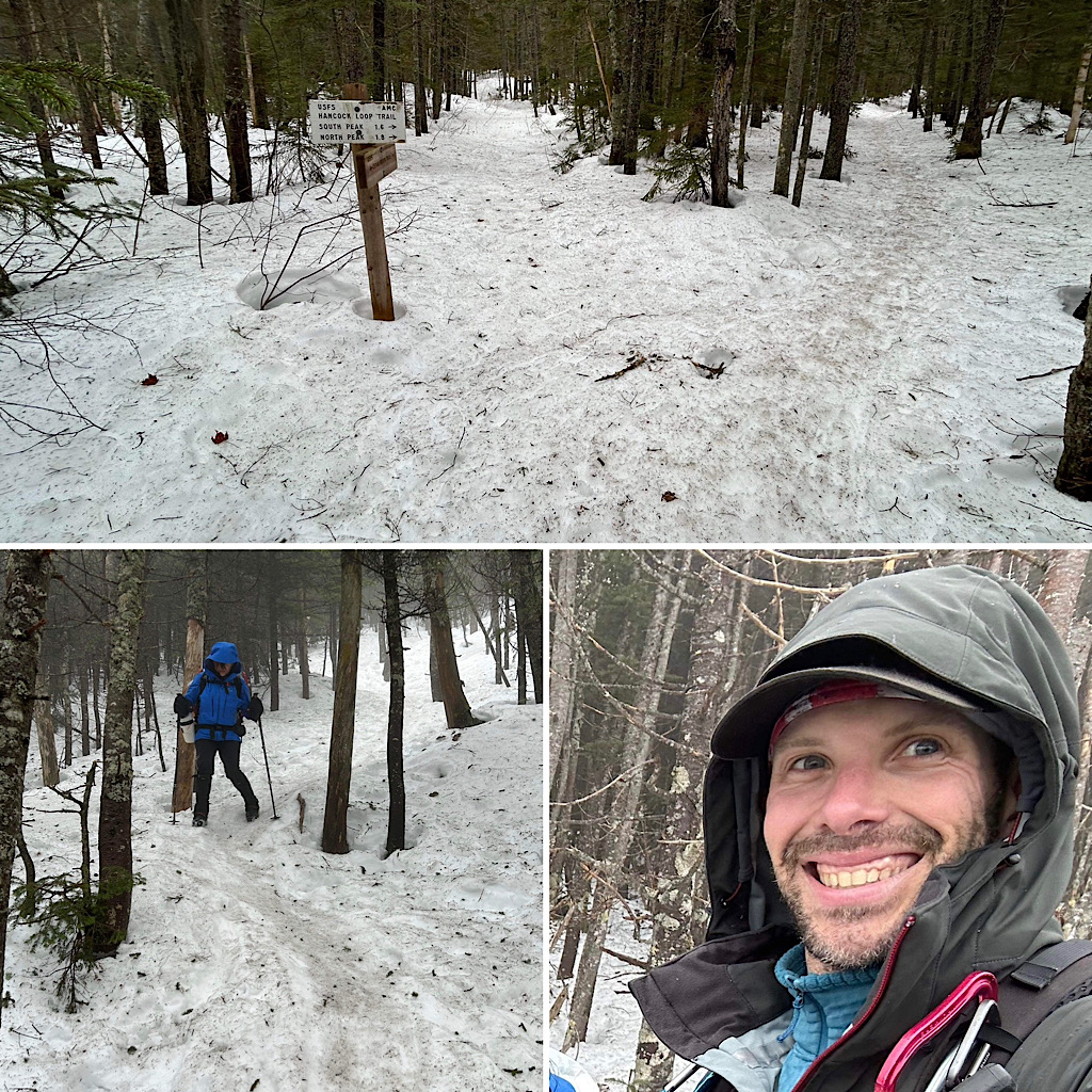 She wanted to get certain 4000-footer peaks hiked so we got her out there for one trip. We put Redline Guide Chase Hall on it and it worked out well. Naturally, one success leading to another, when she came to us with a list of peaks for March, we knew what to do. We put Chase on it again. Up next? This round’s objective was to bag Mt Hancock a.k.a. North Hancock (she had the south summit already). Chase was stoked and honored to be requested, and of course we’re anll eager to help our guests meet their goals. 19 to go!