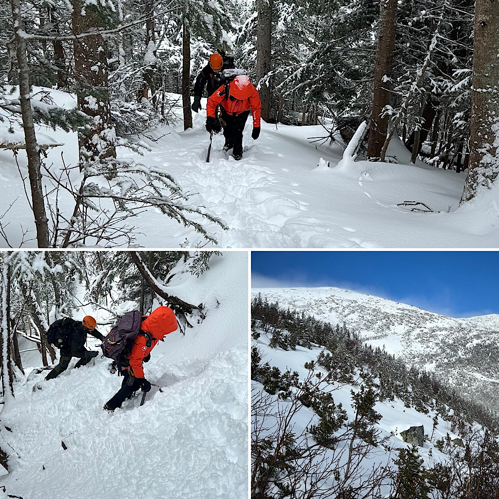 Had a great day out with our guests. With the high avalanche forecast and increasing winds, we made great decisions as a group. Even with this recent snow storm, underneath was bare and rocky making things slow going, but they did great. We topped out on Lion Head (as high as anyone got up today) and had a successful descent back down to Pinkham Notch. —Erik