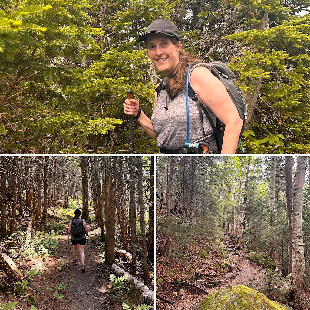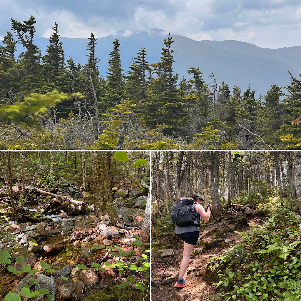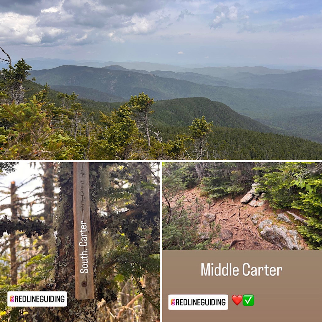 The Carters are in great shape for a hot hike. The trail was dry and the crossings were a delight. The hike up Carter Dome Trail to Zeta Pass was very humid. We talked about prior hydration for hot days as we hiked. It was very humid between South and Middle Carter. The guest only needed those two carters summits today. On the descent we stopped and dipped our feet in the water to cool off. The stream water is still very cold but it was a really good relief from today’s very humid hike. —Chase