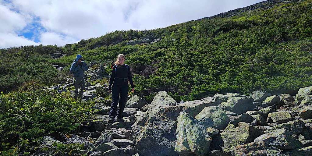 They enjoyed the lush green forest along the Huntington Ravine Trail, the scramble through the boulder field, and the more challenging scramble up the slabs before completing their trip to the summit.