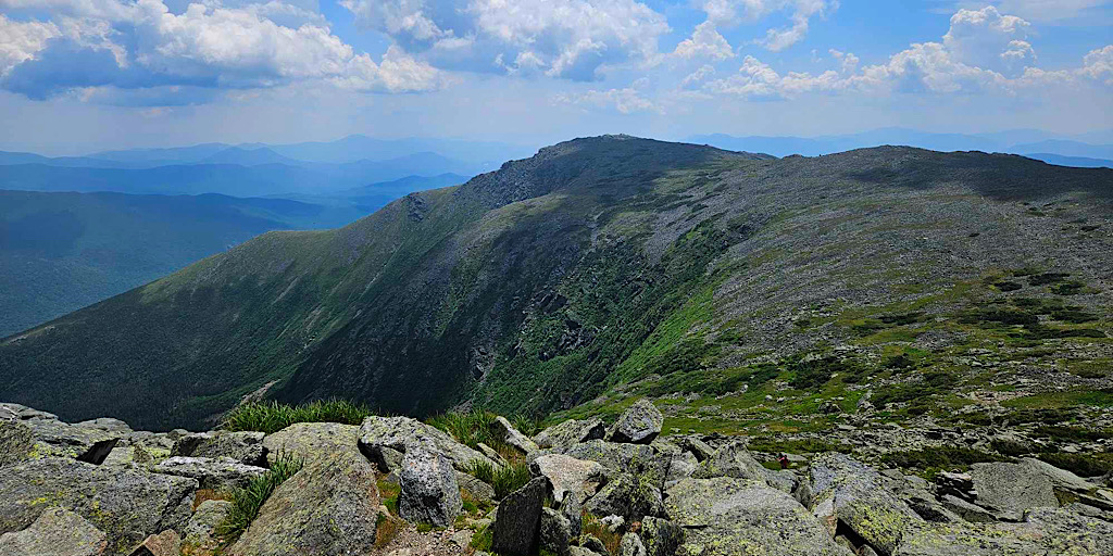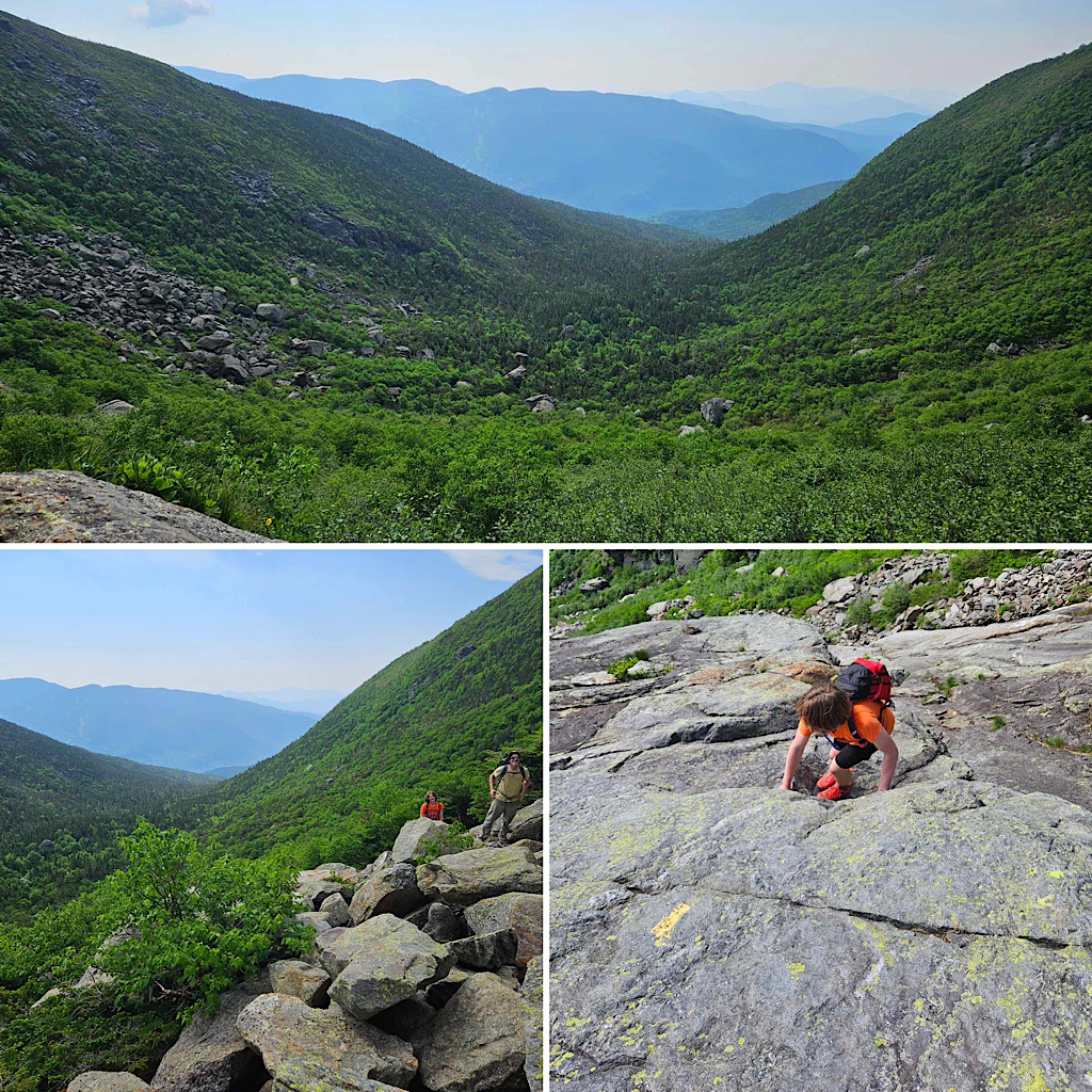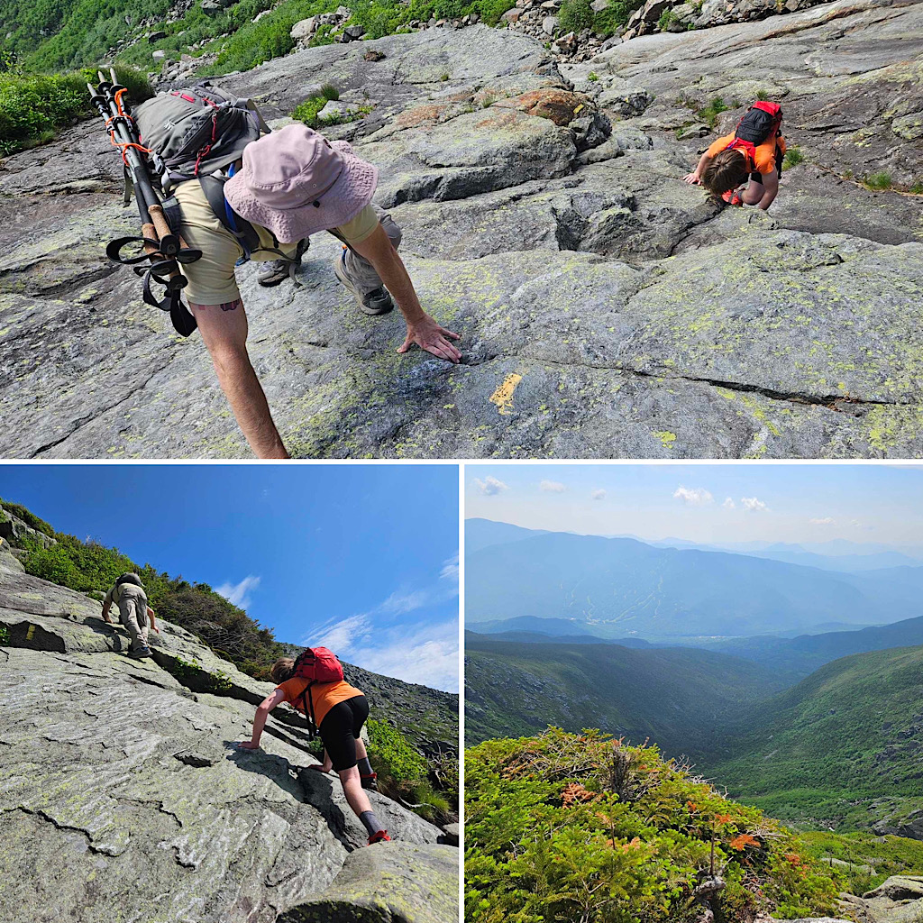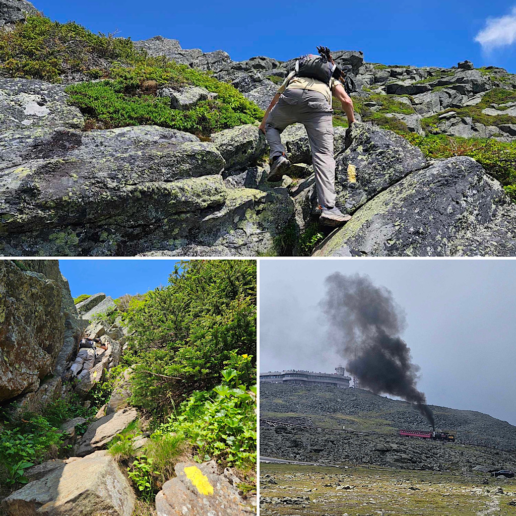 After our hike up Mt. Washington (also a State high point, but one that he’d hiked before by an easier route), he wanted more, and we gave him some recommendations for a few more Class 3 routes to try in the Whites before he returns home.