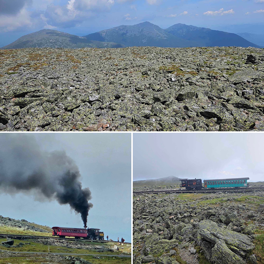 Despite these stops (plus standing in line for the obligatory summit sign photo and visits to all three summit gift shops), our guests completed the hike in under 8 hours — fast enough to be almost back to Pinkham Notch by the time we heard the first rumble of thunder, and beat the rain.