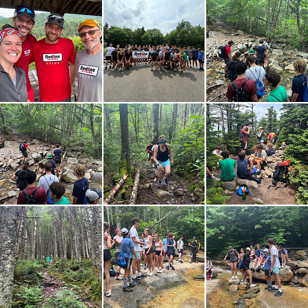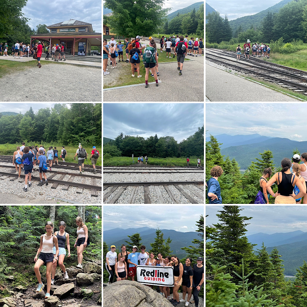 This year we took them into the Gateway of Crawford Notch — instead of Pinkham Notch as we did last time — to do some hiking, coming together over by Crawford Depot. With varying levels of fitness within the group and desired levels of excertion preferred in the muggy weather, we broke up the kids and young adult leaders into three groups offering Mt Willard and Mt Avalon from the 52WAV list and Mt Field from the NH 4k list. Doing the leading on-mountain were Redline Guides Tim Jones (on Mt Willard), Ken Hodges and Hayley LaPointe (on Mt Avalon), and Chase Hall and Brian Wasiewski (on Mt Field).