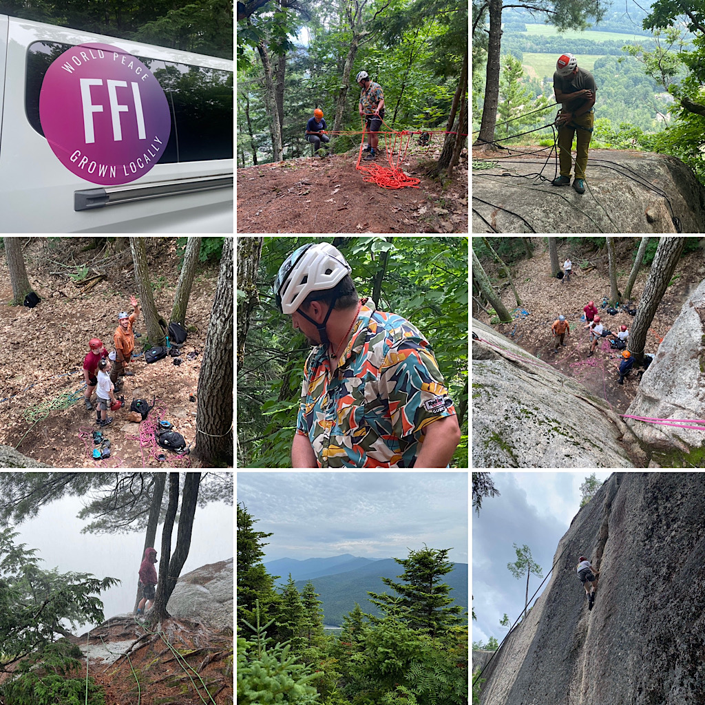 While the hiking was going on in Crawford Notch the Friends Forever International (FFI) group was busy learning the ropes in North Conway. This youth leadership camp is cool and interesting, the way they carry themselves, introducing a vegan way of thinking and eating to the group, the campers challenged with various areas of study from language to science, to what we do here at Redline Guiding.