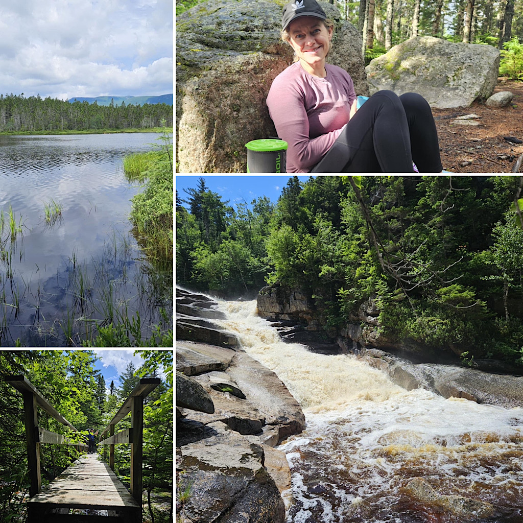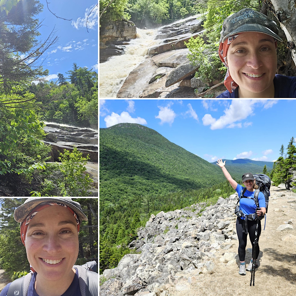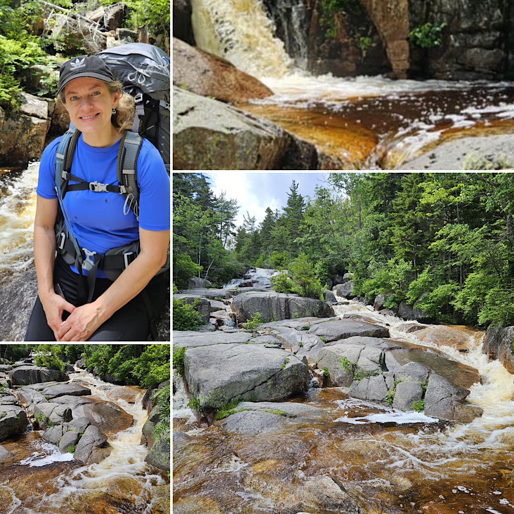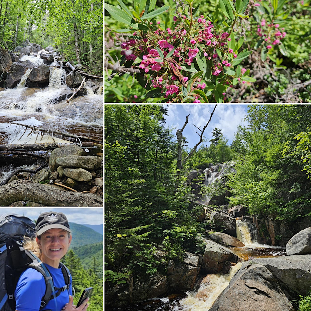 In the morning, we slept in until the sun was shining. While hiking on Sunday we visited several waterfalls, which were really running after all the rain. Thoreau Falls looked incredible with all that water!