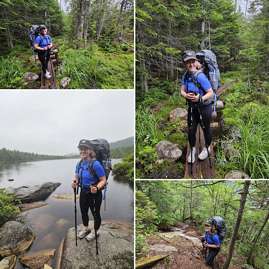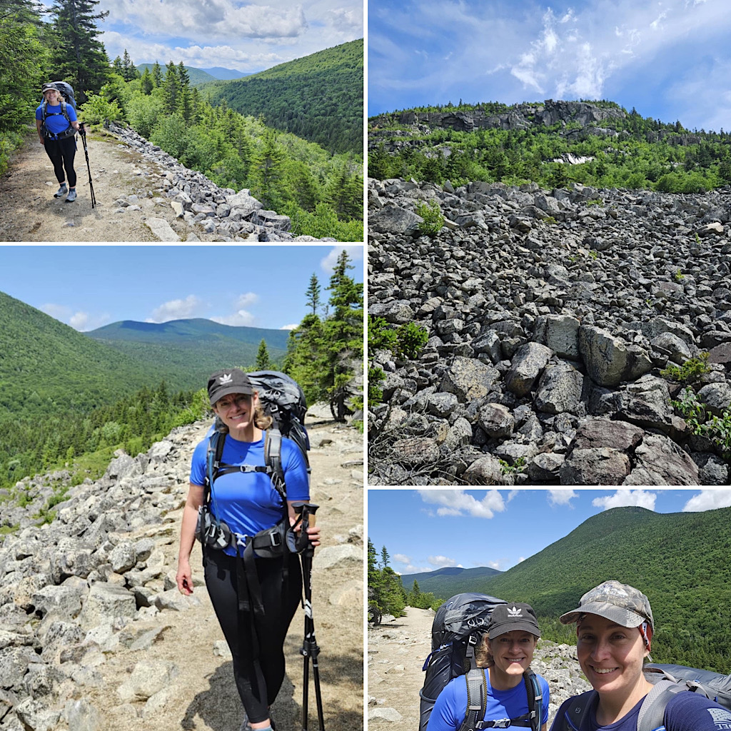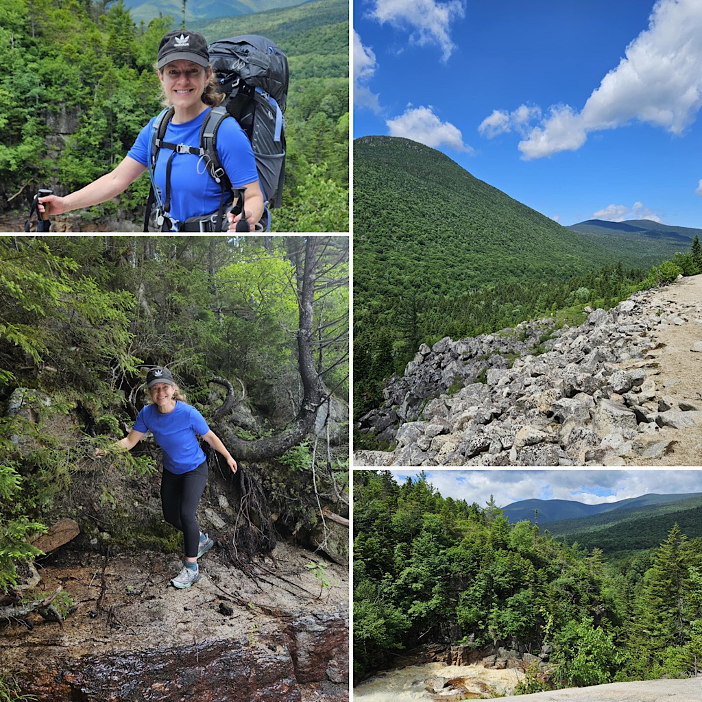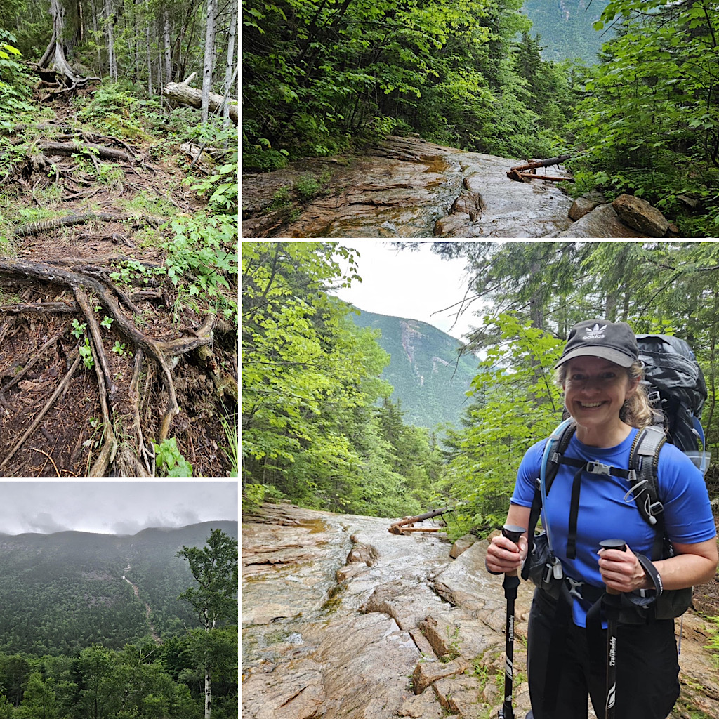 In the morning, we slept in until the sun was shining. While hiking on Sunday we visited several waterfalls, which were really running after all the rain. Thoreau Falls looked incredible with all that water!