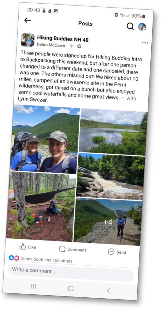 It was a great weekend, very chill, and the guest who participated felt like she learned a lot. Even when it rains, it’s hard to have a bad weekend in the White Mountains. —Debra