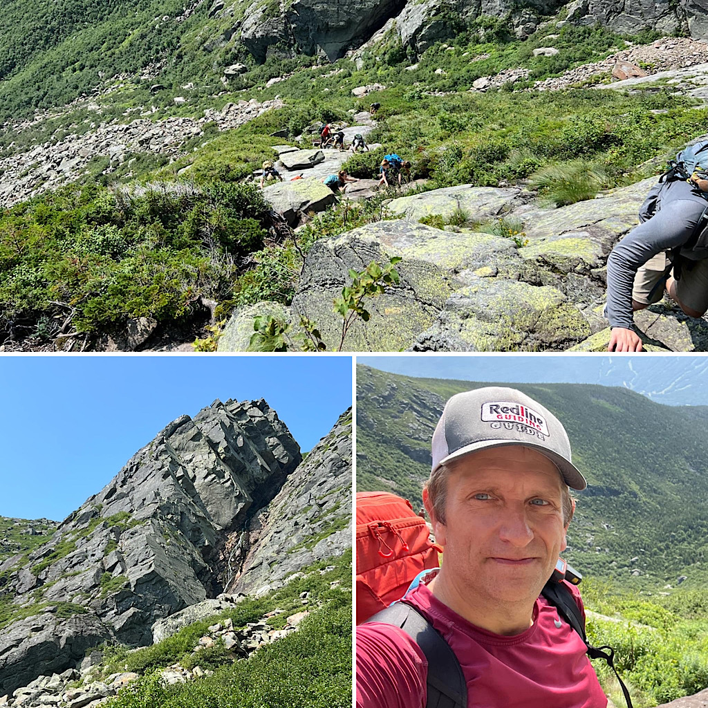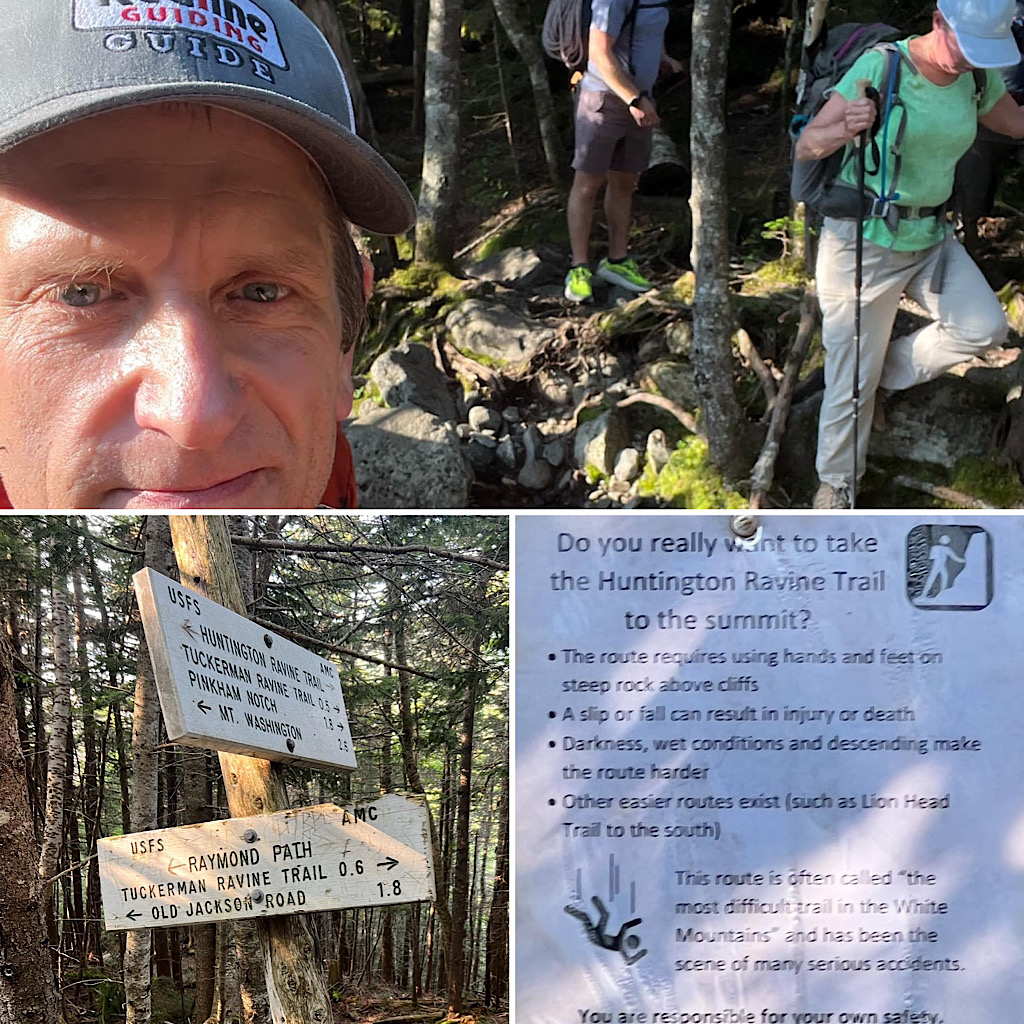 We set off at 7am from Pinkham Notch and this guest had zero issues tackling this trail! Perfect weather conditions all day (except for the haze from the wildfires out west). Up Huntington Ravine Trail and after a discussion on the Summit of George, down the Lion Head was chosen and back to the cars we went. Right around 8 hours round trip which is very respectable! Congrats to our guest on a great day hiking in the Whites on the ‘hardest trail’ out there! —Glenn
