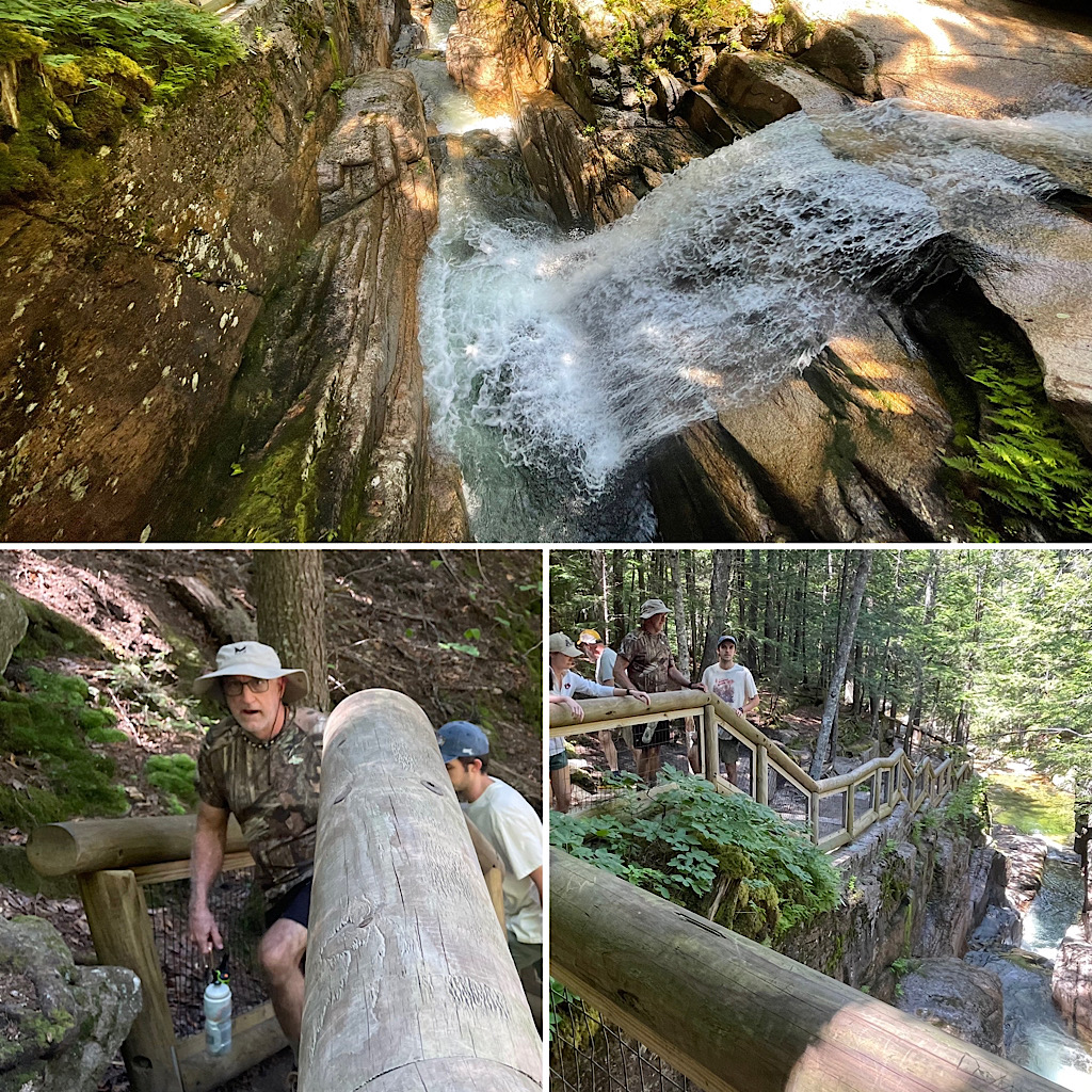 A family from Alabama reached out hoping to book a non-specific nature tour. When asked what our prospective guests at the time might like to focus on — us offering topic examples like history, geology, sociology, environment, flora and fauna, and teachable moments — the reply we got to all that was “yes.” For those not in the know, this translates to: “we’ll take it all.” Perfect. To ensure we had maximum depth and breadth of our offering, two Redline Guides, Mike Cherim and Ken Hodges, were put on it. Both with certain strengths to offer, complete with dad jokes (only available for a limited time). The plan, like the request, was varied. The idea was to drive and hike, drive and hike, and drive and hike, visiting site after site, discovering each location’s topics of note and delving into them. Locations included Bear Notch Rd and the Kancamagus Highway (Rte 112), the Swift River and Rocky Gorge, Church Pond, Sabbaday Falls, and finally the Russell-Colbath House. Mike and Ken both took several photos during their travels…
