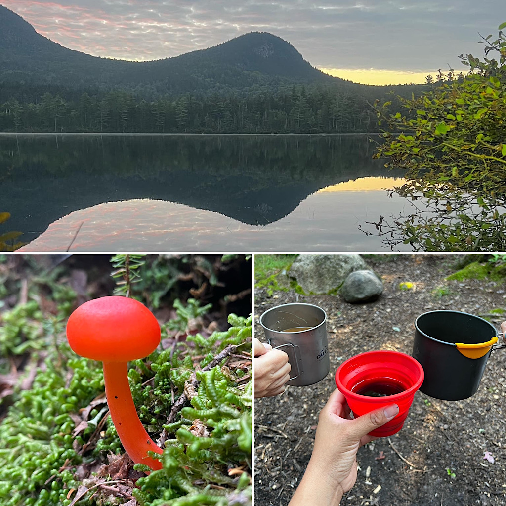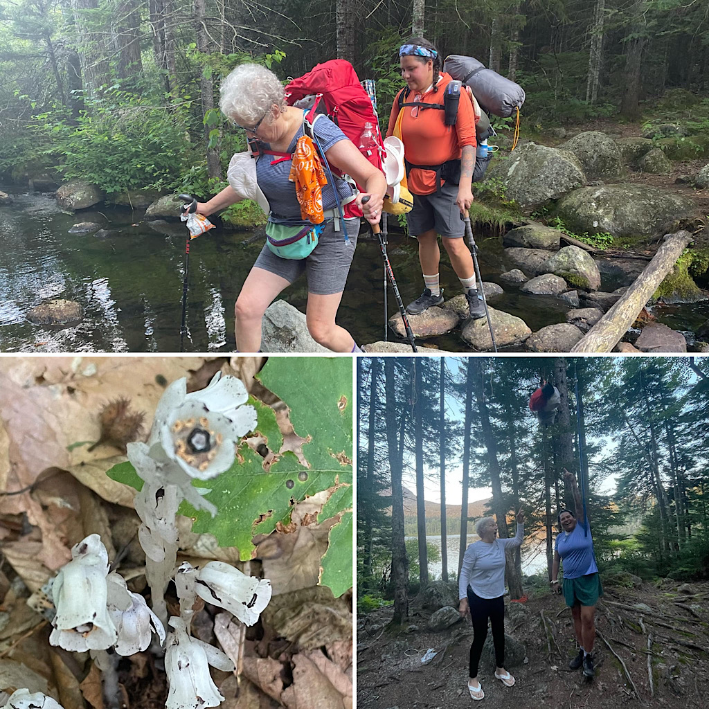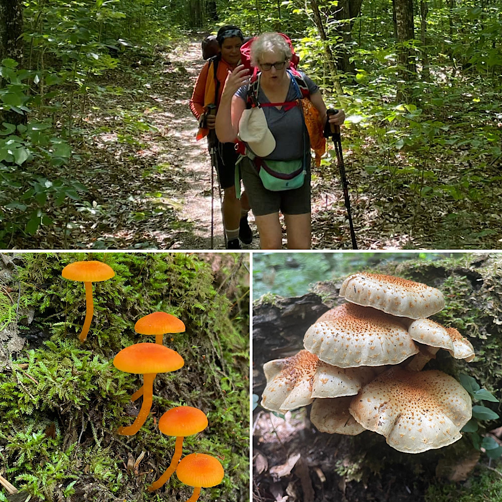 We were in bed before dark and one participant was up early enough to take pretty photos of the pond in the morning. I snoozed. After breakfast we packed up and headed out towards the Sawyer River Trail. This one mostly an abandoned two track following the river early on and along swampy areas towards the end. More mushrooms, some views, another fording, and, voila back the to Kanc we were! So much laughter, we were ready to go on another trip! —Arlette