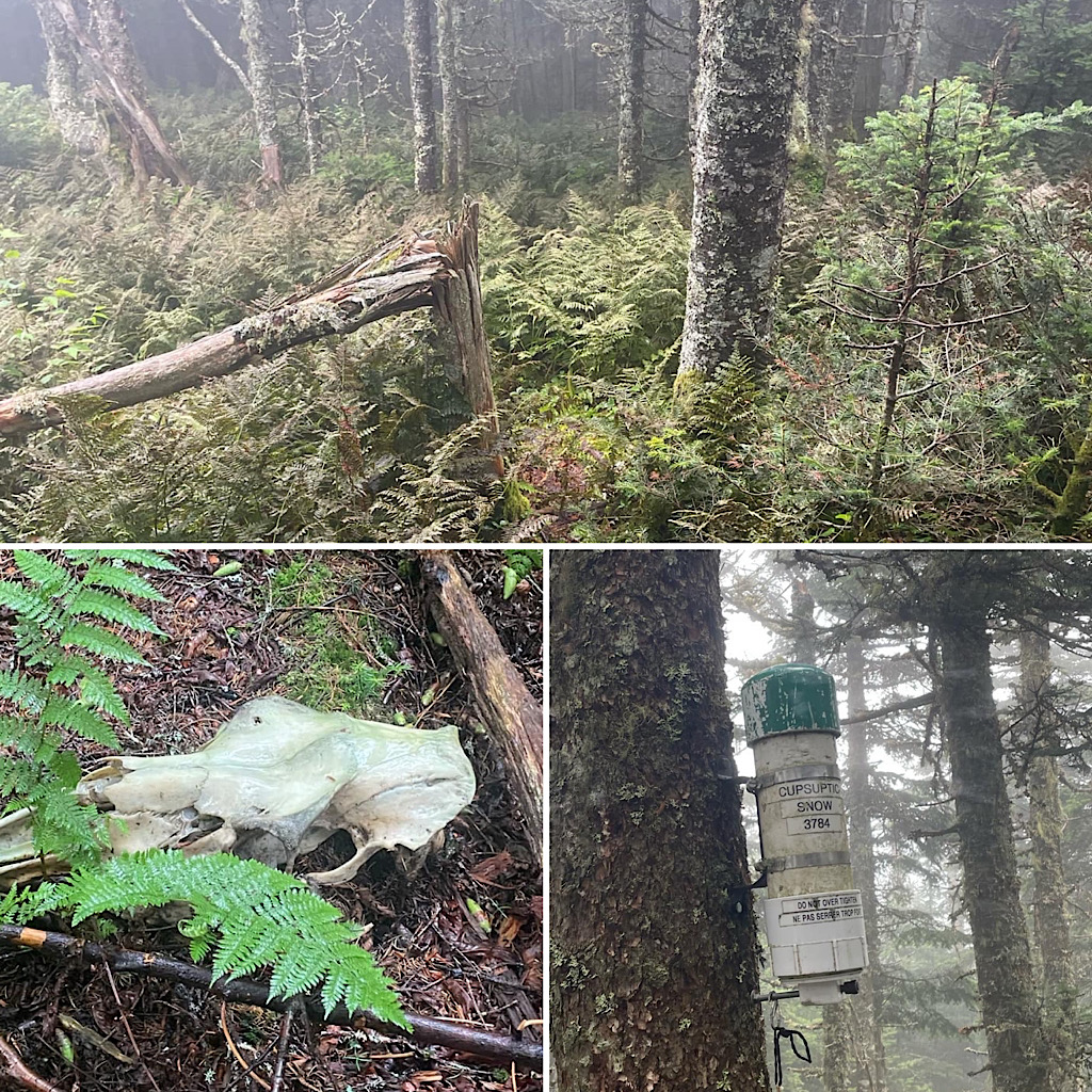 To top it all off, we encountered a lot of spruce grouse, some deer, and a moose skeleton, which is cool to see. We did get to see a young bull moose on are drive back for are last hike, too. Our guest is already looking forward to his next list: The New England Fifty Finest (a list of mountains ordered by prominence). —Pat