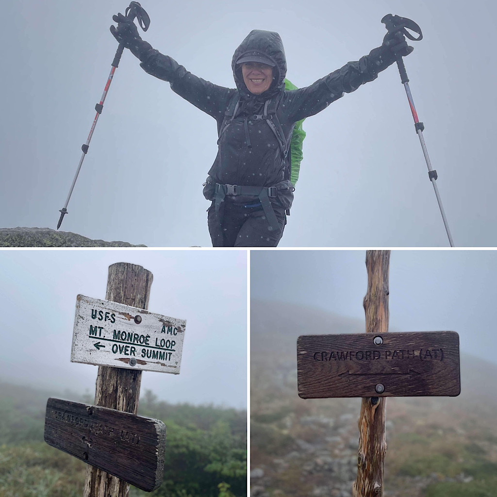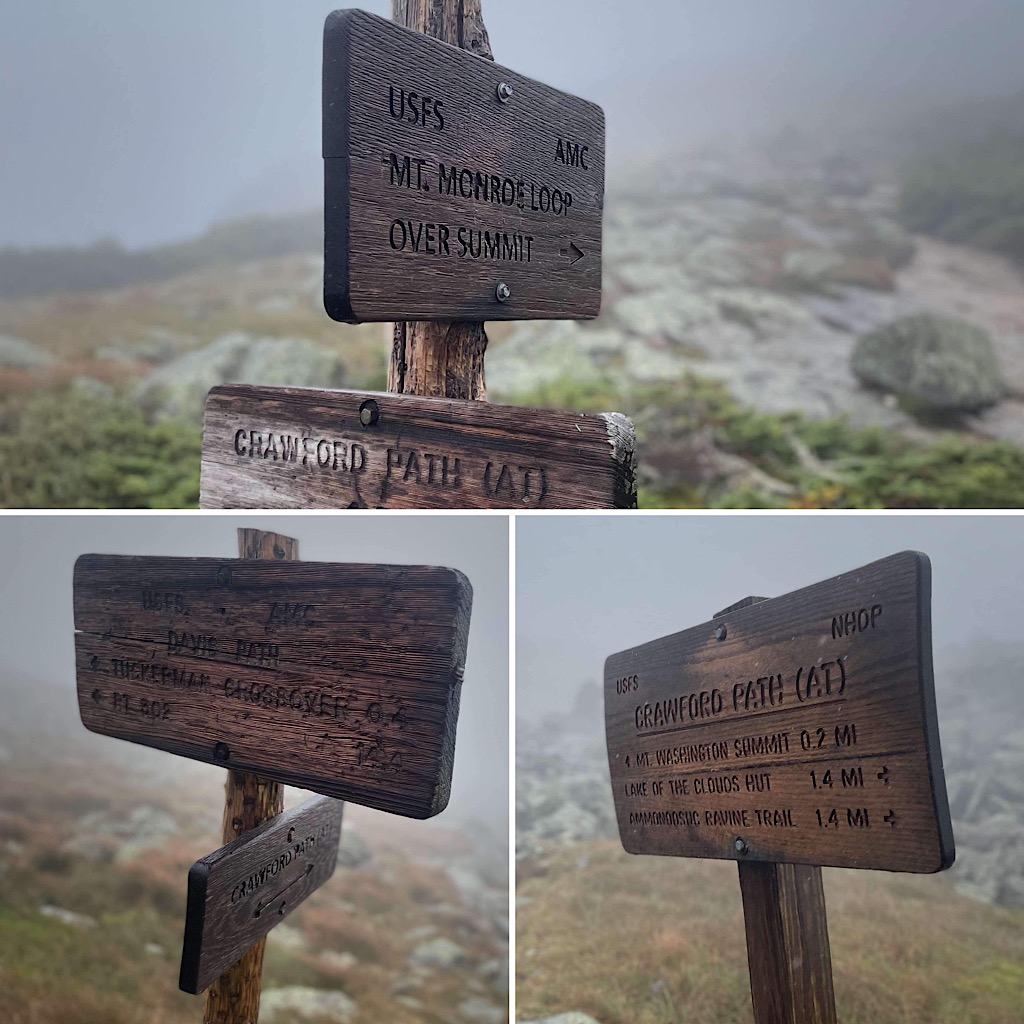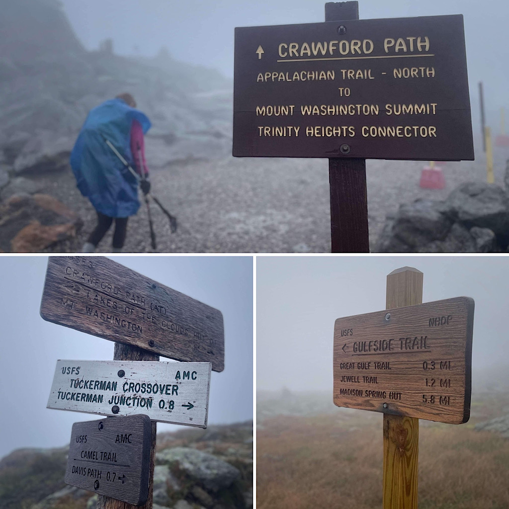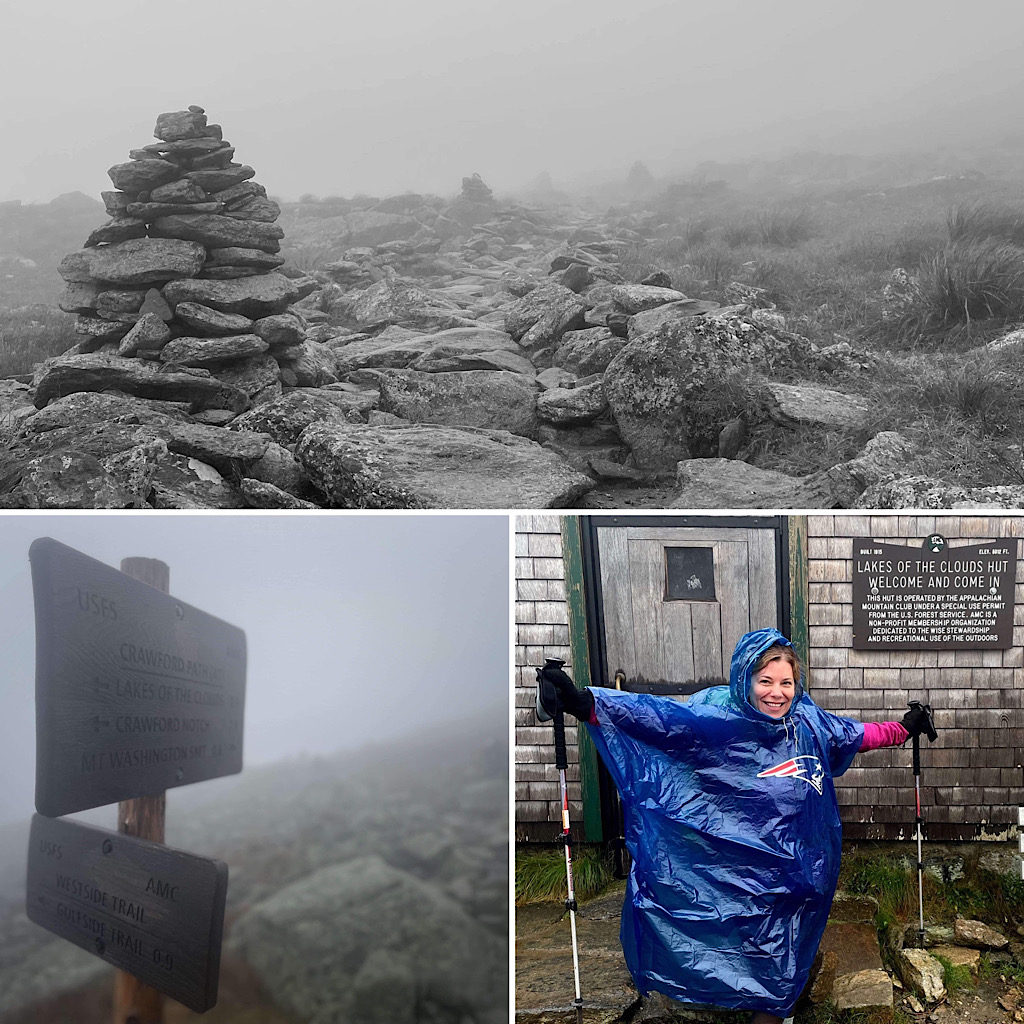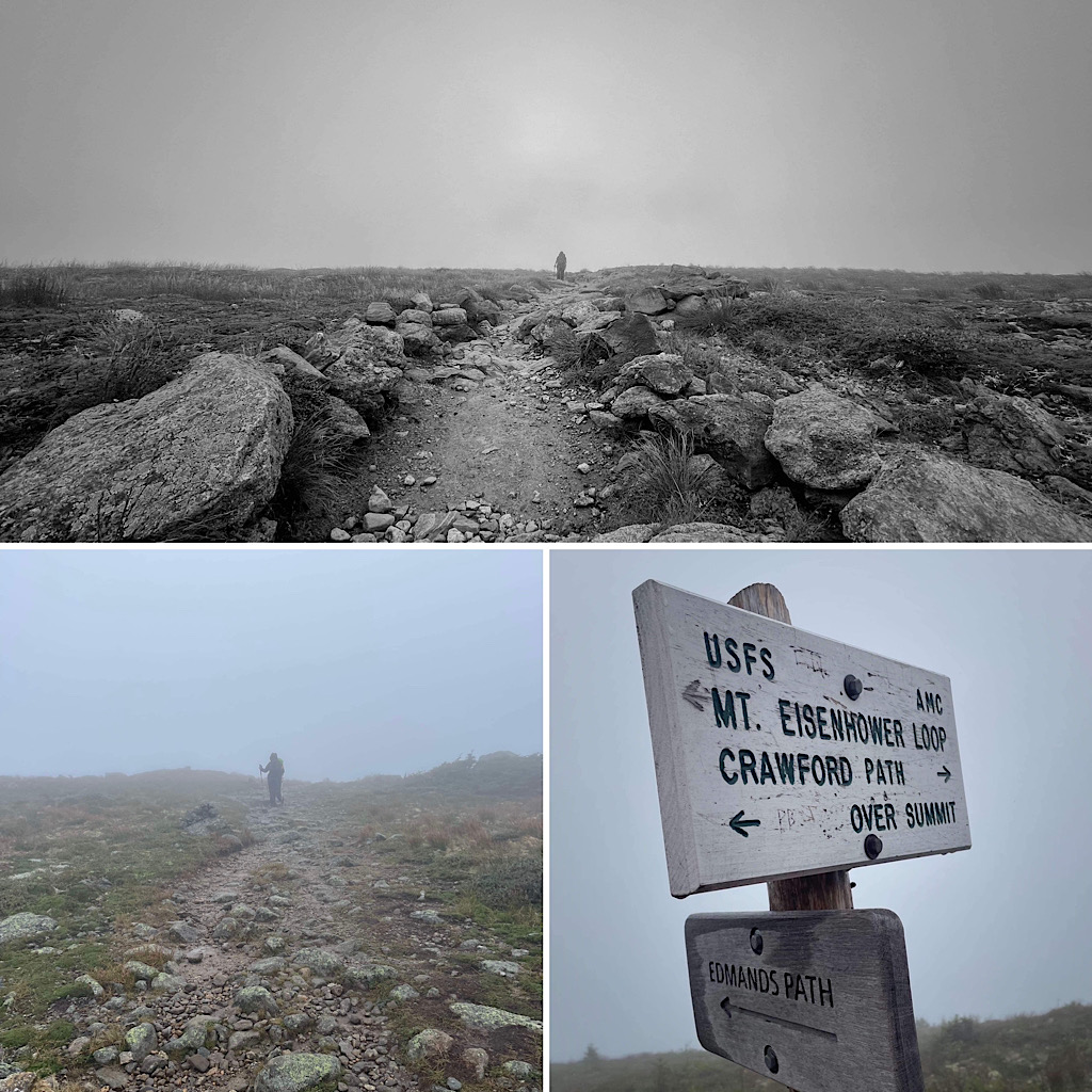 Up top it was in the mid-30s, it was windy, sleeting, and there was barely any visibility. The rocks were wet. Someone who stayed at the hut passed us with no pack. He said he was just going up for a quick out-and-back. Down on Base Station Road we gave an AT thru-hiker who rode the train with a bum knee a ride to the Highland Center. A little later we’d learn another person never made it down the night before. We’re all saddened to hear this, but we’re also not surprised in such tricky weather. If I’m being honest, based on what I saw out there, I’m in disbelief that it doesn’t happen more often. Rest in peace. —Mike M.