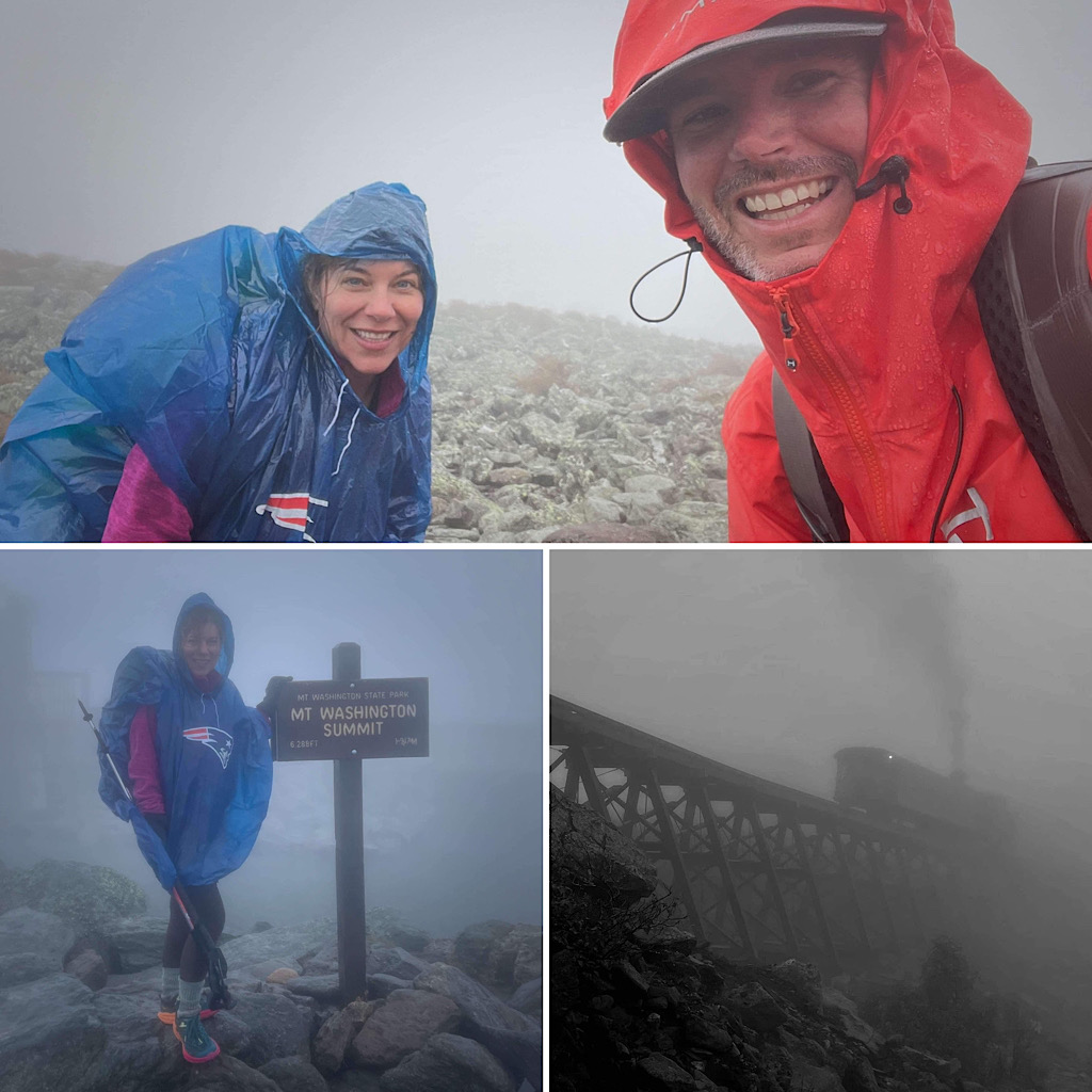 On the morning of Day 2 the forecast was even worse. Because we communicated and assessed throughout the day before, we already know the answer: our guest didn’t think she had the Northern Presi traverse in her. We pivoted. After breakfast we’d head up to the summit of Mount Washington and then we will bail down the Cog right-of-way. Mike C (a.k.a The Bossman), and Rosie (a.k.a The Bossman’s dog), picked us up at the Base Station. It was 60 down there.