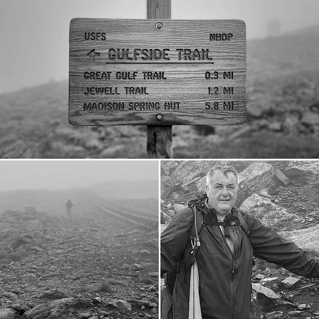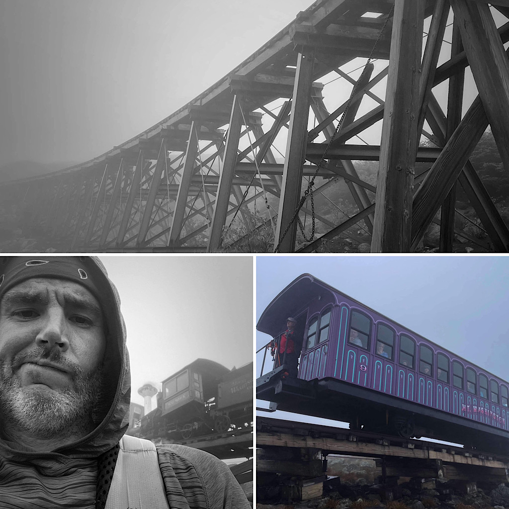 The evening and morning weather updates unfortunately indicated more of the same for Day Two. The plan had always been to ascend Mt Washington, views or not, and after breakfast we headed up into the abyss. While the original plan was to descend the Jewell Trail to complete the standard loop from the west, we called an audible and went down the Cog right-of-way to keep our guests off of those notorious northern Presi rocks. They have some big things ahead and it just wasn’t worth the risk. They achieved their summits and while there wasn’t much for long views, our guests got some important experience in adapting to the less than ideal conditions. —Mike M.