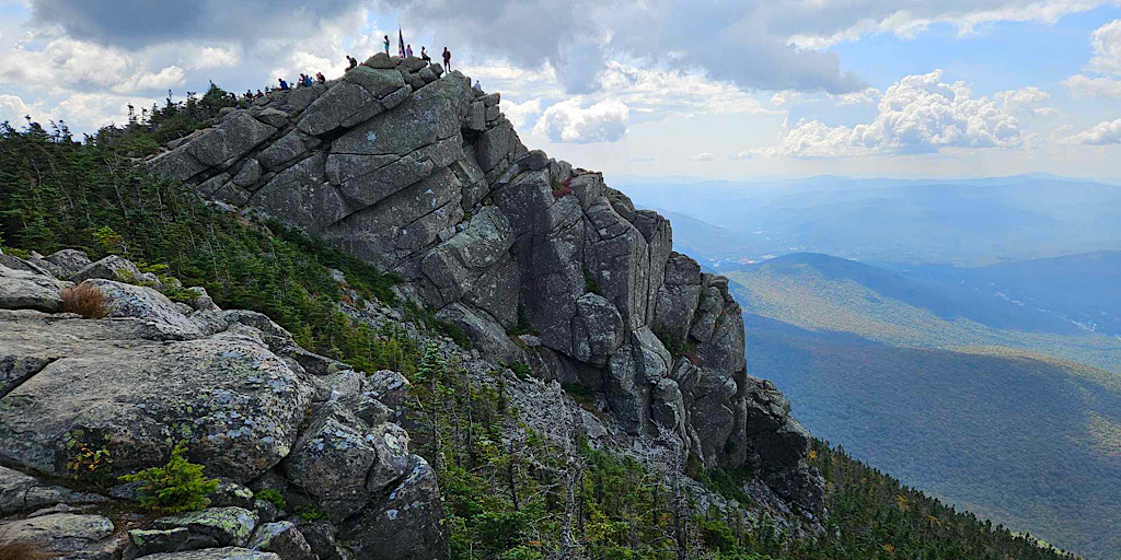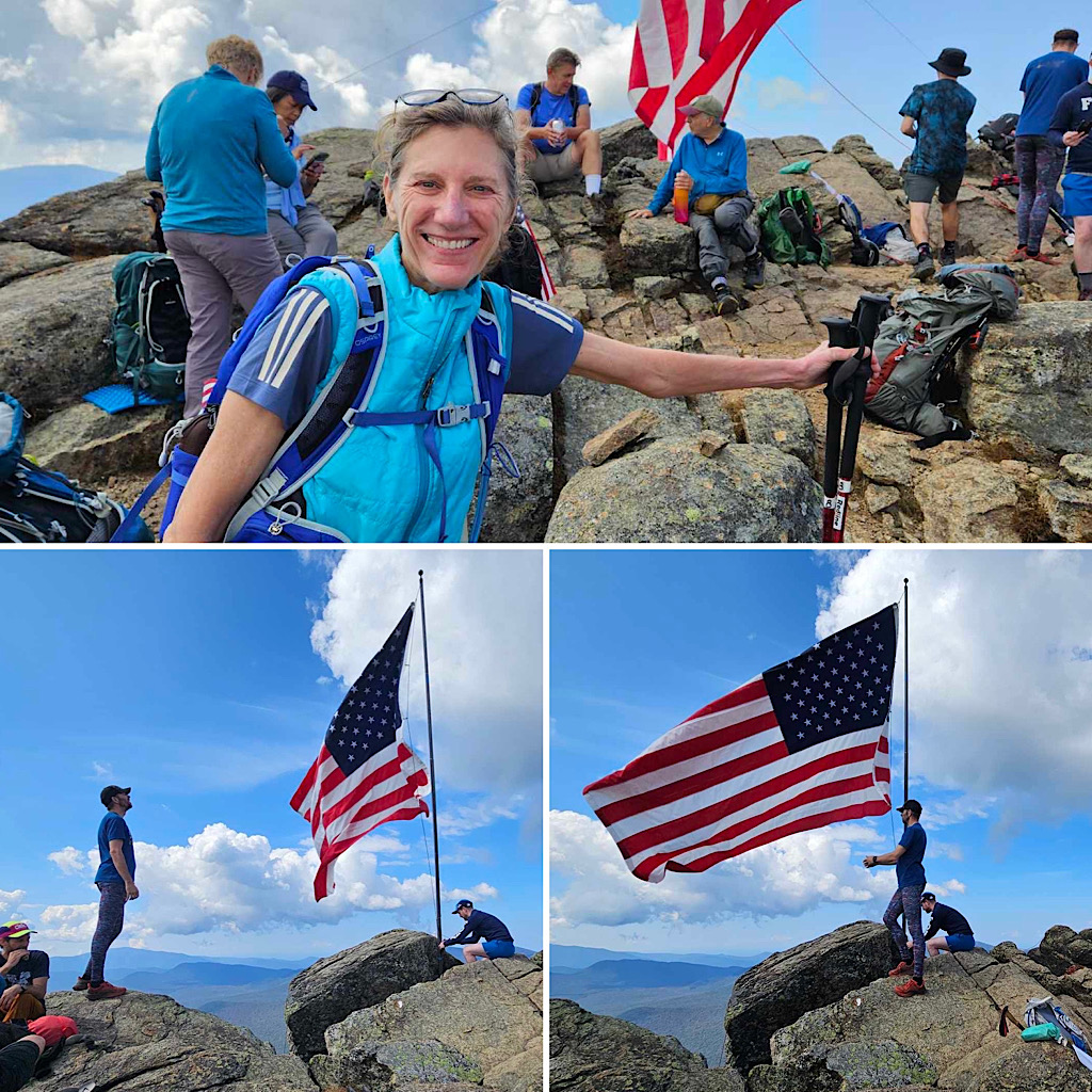 A returning guest wanted a guide on a 4000-footer. Selected were Flume/Liberty by Redline Guide Debra McCown. These two are located on the south end of the Franconia Ridge for those not in the know. She chose Saturday, 9/14, as her day. We mentioned to her that that would be a busy day in the mountains as that would the day many hikers would memorialize the victims and first responders of 9/11 by participating in the annual Flags on the 48 event. She knew, well aware, perhaps more so than others having lived in New York City during that time. It was very meaningful to her. Debra provided some additional thoughts (paraphrased below) along with a number of photos of the hike and the event. Coincidently, in a couple shots our very own Redline Guide Chase Hall is shown as he participated in the event.