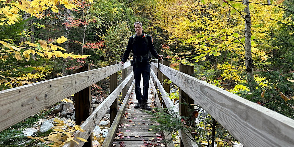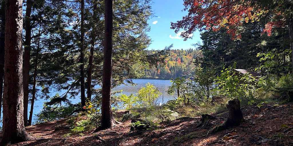 Biting insects and hot, humid weather used to occupy many of our thoughts. They have been replaced, much to our delight. Now we’re better able to take note of the positive superlatives. For example: it’s cooler and, barring a little rain now and then, drier. The biting insects have for all practical purposes, vanished. And the mostly green visuals have tuned into a kaleidoscope of fall colors. In other words, for those who appreciate these things, it an amazing time of year to hike and backpack. That’s what one guest wanted to do and we put Redline Guide Chase Hall on the mission. The overnight destination being the lovely and somewhat now more disconnected (thanks to a closed forest road) Sawyer Pond. There’s not much more to tell that the photos can’t so we’ll jump right into a few images: