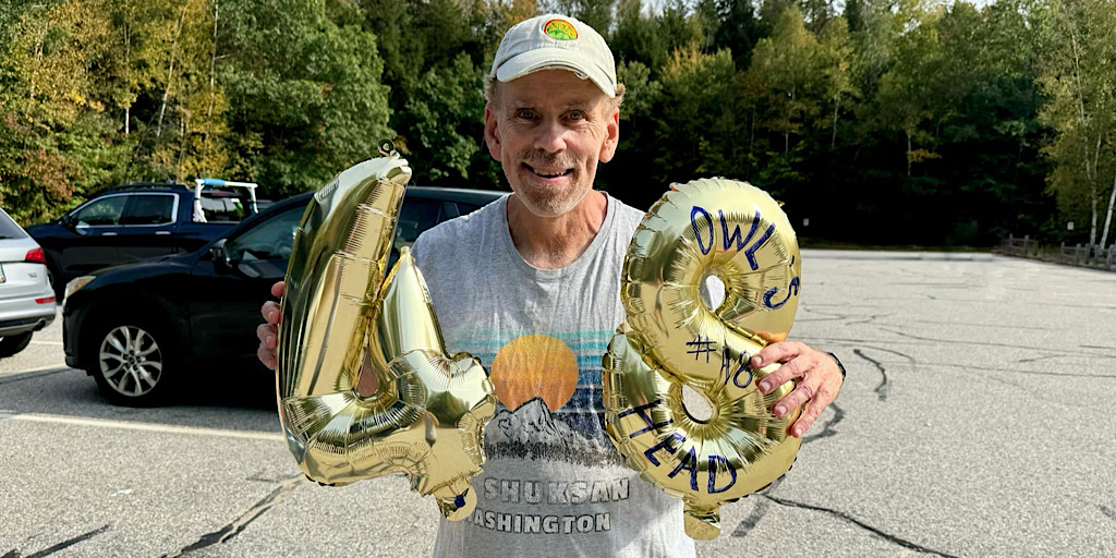 We mentioned in the blog post about his last hike that we led with this now-returning guest that there were two peaks left to finish his quest for the 48, and that after it, only one remained. Well, fast forward to this hike led by Redline Guide Hayley LaPointe, and now the deed has been done. #48 on Owls Head Mtn — or rather #48 after returning to the trailhead. After all, as with many hikes, reaching the highest point means you’re only half way done. But with that we’ll step aside for Hayley to tell the rest.
