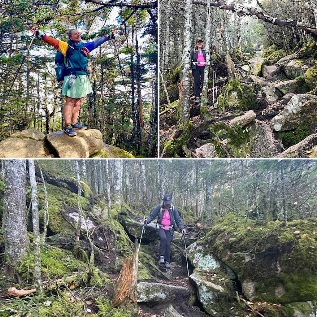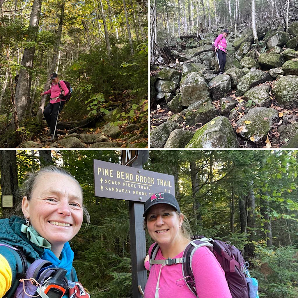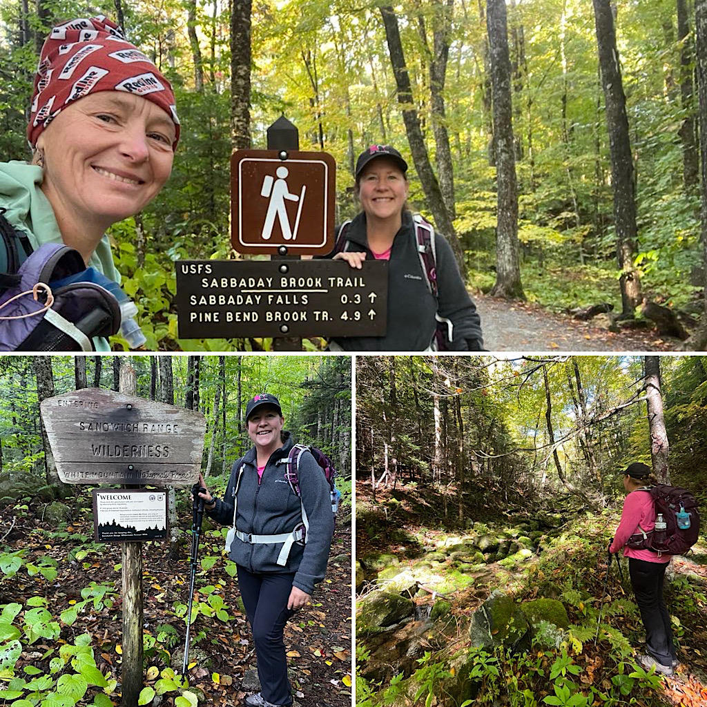 Those in the know — the hikers that hike NH’s 48 4000-footers — will understand that “Tris” in our shortened title will refer to the Tripyramids. There are three such peaks bearing that name, all over 4000-feet, though thanks to the 200-foot prominence rule only two actually count: Middle and North. The purpose of this hike was so our returning guest could snag those two peaks. On lead for this was Redline Guide Arlette Laan. She led the way to both peaks using Sabbaday Brook Trail (up), Mt Tripyramids Trail (across), and Pine Bend Brook Trail (down). We will say this, it wasn’t easy. What follows is a short summary written by Arlette, along with some photos of their mountain adventure.