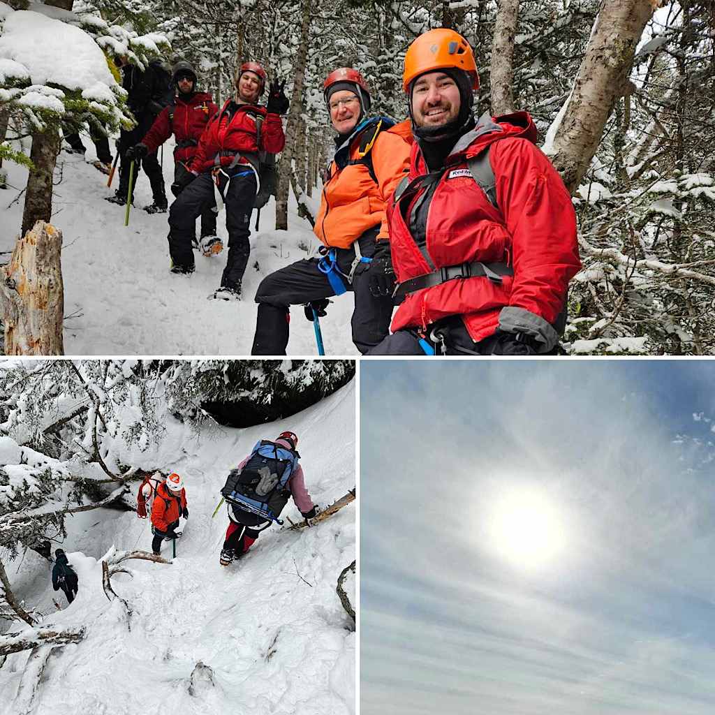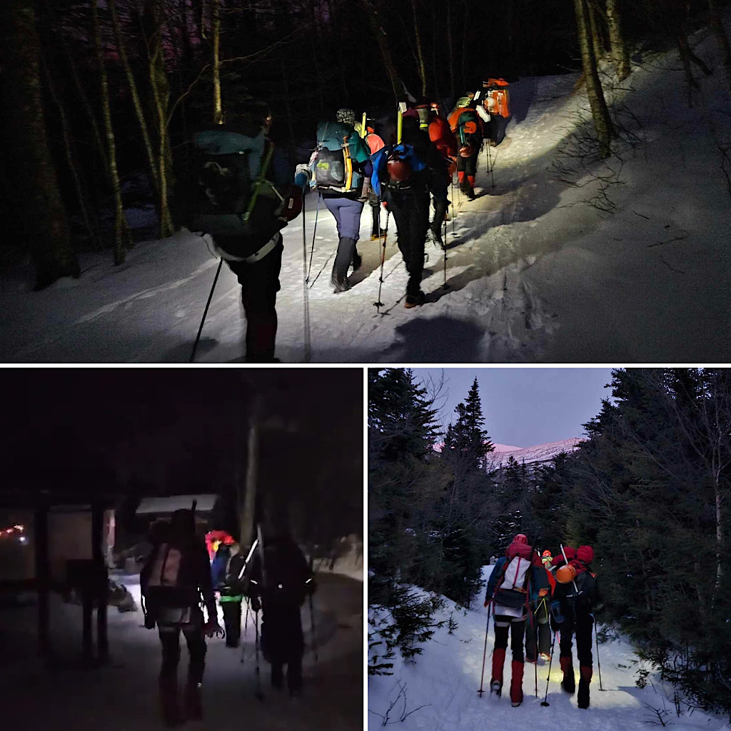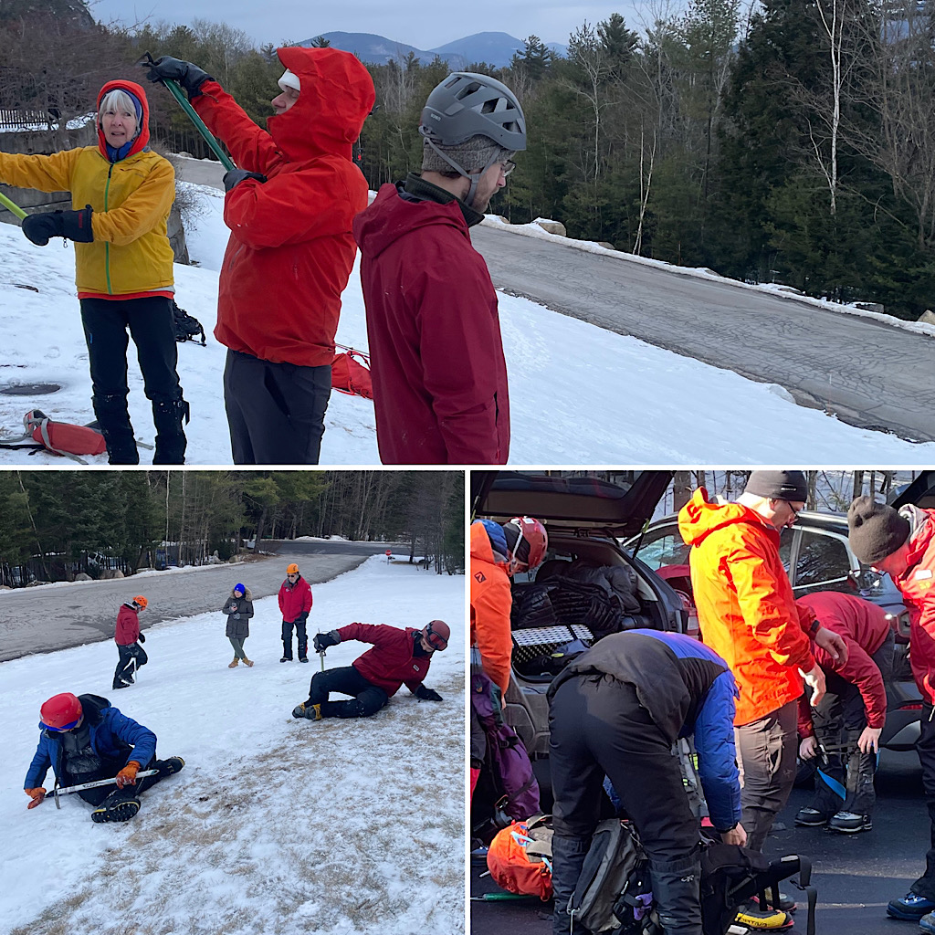 Group one signed up for our MWOBS Overnight Adventure and took part in a Mountaineering Skills class on Friday in the afternoon along with members of group two. The second group was hoping to just summit the mountain then come back down the same day. They, too, did the training but opted for the full program so they also participated in a Winter Skills class Friday morning.