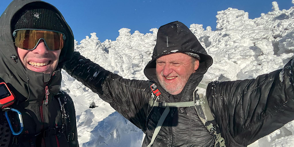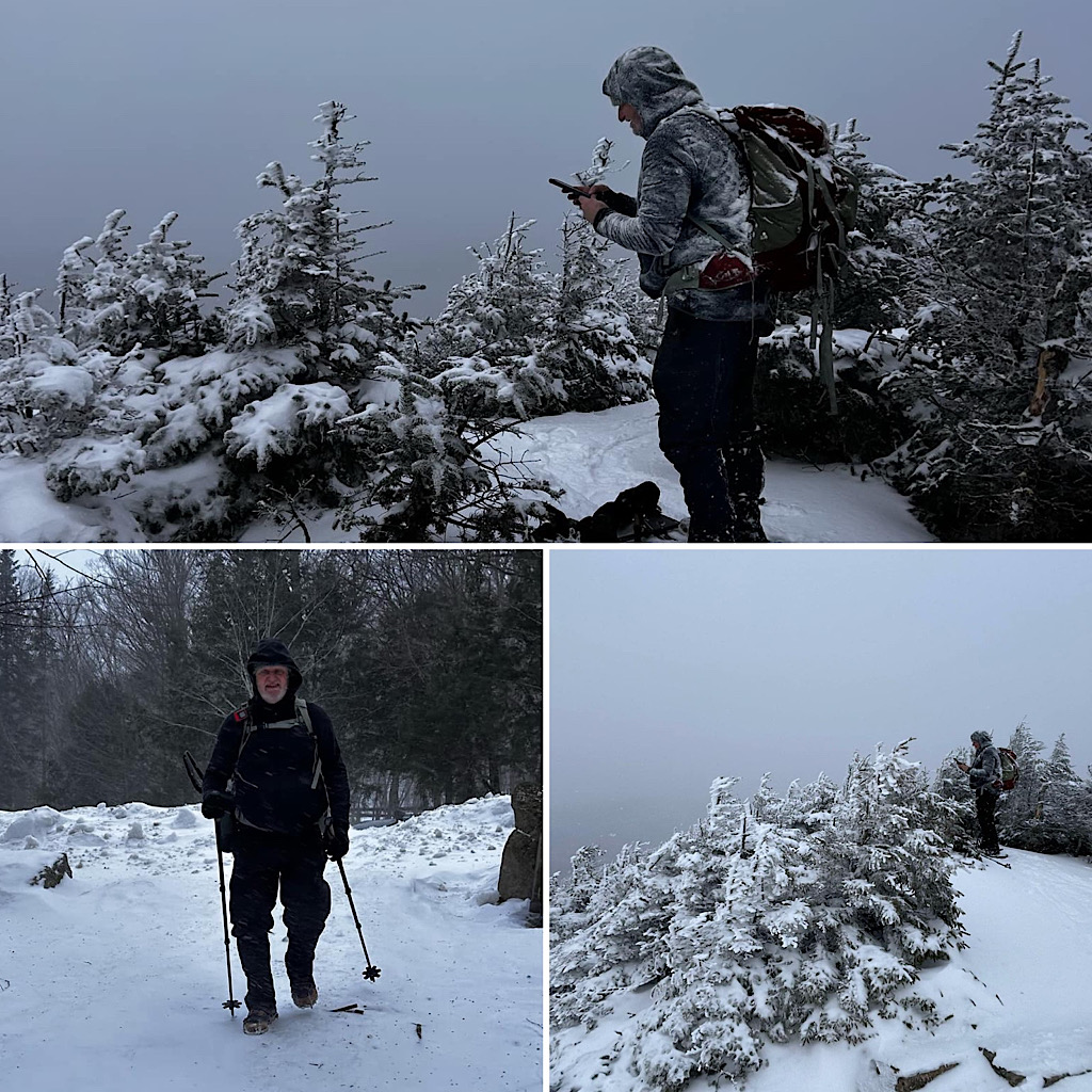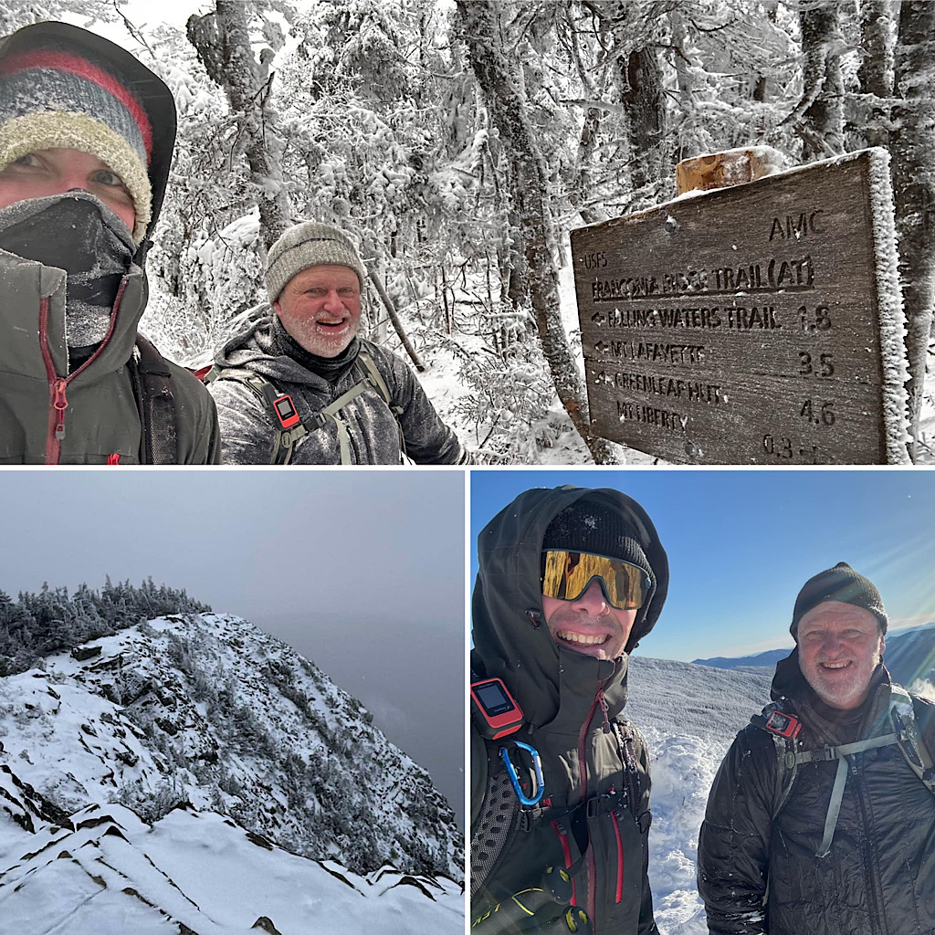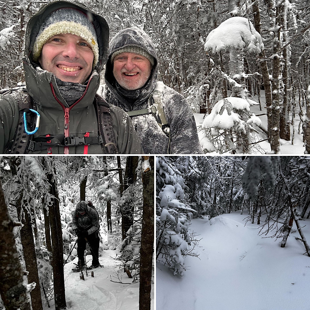 Two days, two hikes, two mountains closer to completion of the Grid (all the 4ks every month). Though there’s not much to see here, folks — no photos on day two — but we do have a few photos below. Day one was Liberty and day two was North Twin. Both involved a lot of trail breaking so if all the summits were in the crosshairs, it’s forgiven if they weren’t reached. Trail breaking is hard work and Redline Guide Chase Hall told us that our guest earned himself the Gilded Boot Award for his efforts. The result is that the community wins and they offer their gratitude — that’s what that’s all aboot!