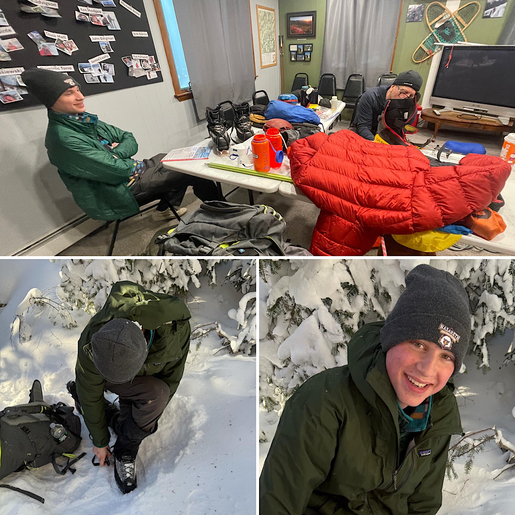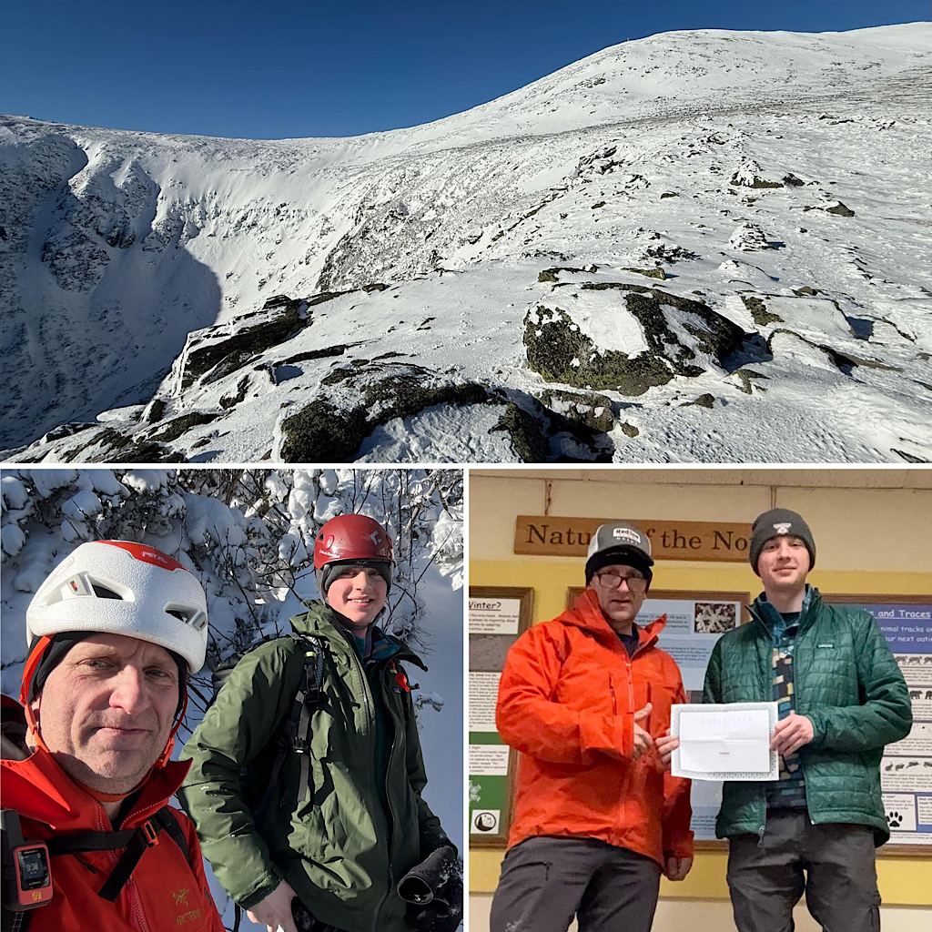 One day of instruction and preparation for George! Winter Skills are an important part of hiking and climbing in New Hampshire. Our 19-year-old guest wanted to learn how to do it safely and needed to prove to his mom that he was good to go. Then part two (Mountaineering Skills) was learning to walk and climb in crampons and most importantly how to self arrest in the event of a fall. Our guest was in shape and ready for the day. Success in all aspects.