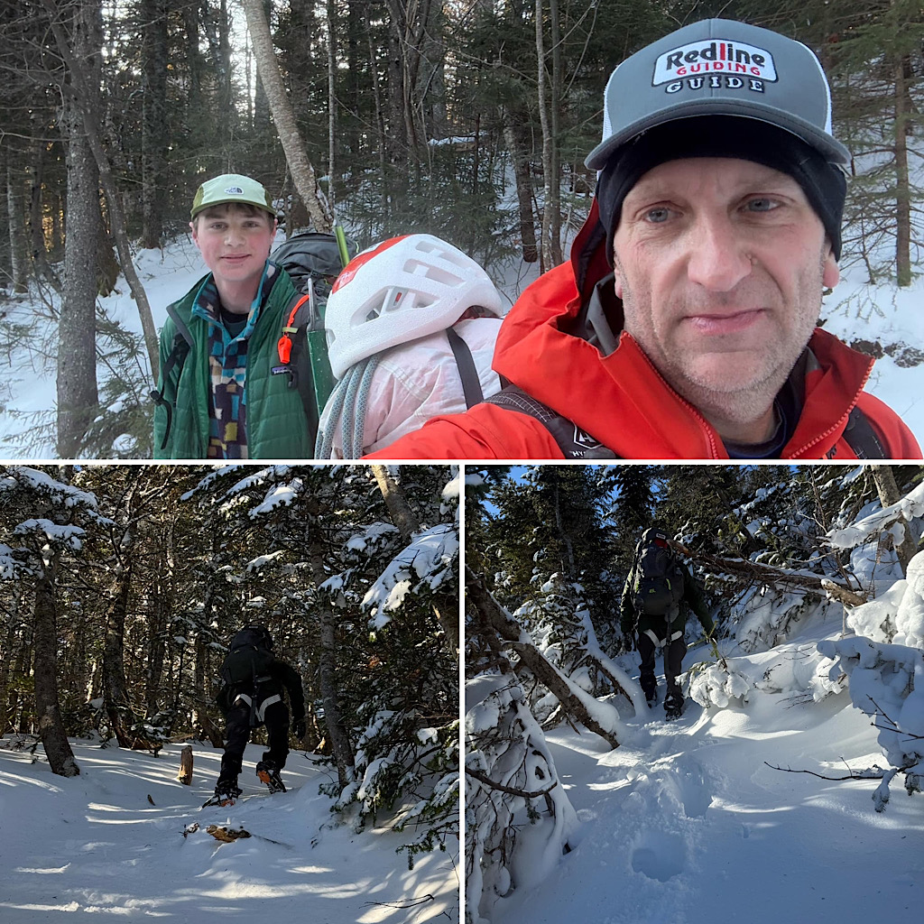 Our two-day “Winter Mt Washington” program is very popular and for good reason. First of all the training is extremely helpful in keeping people on their feet and safe for the climb. Second of all, they look good doing it — versus that first-time-on-crampons awkwardness. It’s win-win. On this tour we had one student/guest, a 19-year-old from Connecticut. When he reached out we noted his address and mentioned that one of our guides was from his area. He responded to this news by asking: “Glenn?” Indeed he was right, and this wasn’t a referral, just proof that it’s a small world. And with that, we’ll let Redline Guide Glenn Van Neil — as he seemed to be the appropriate guide on this one — tell the rest: