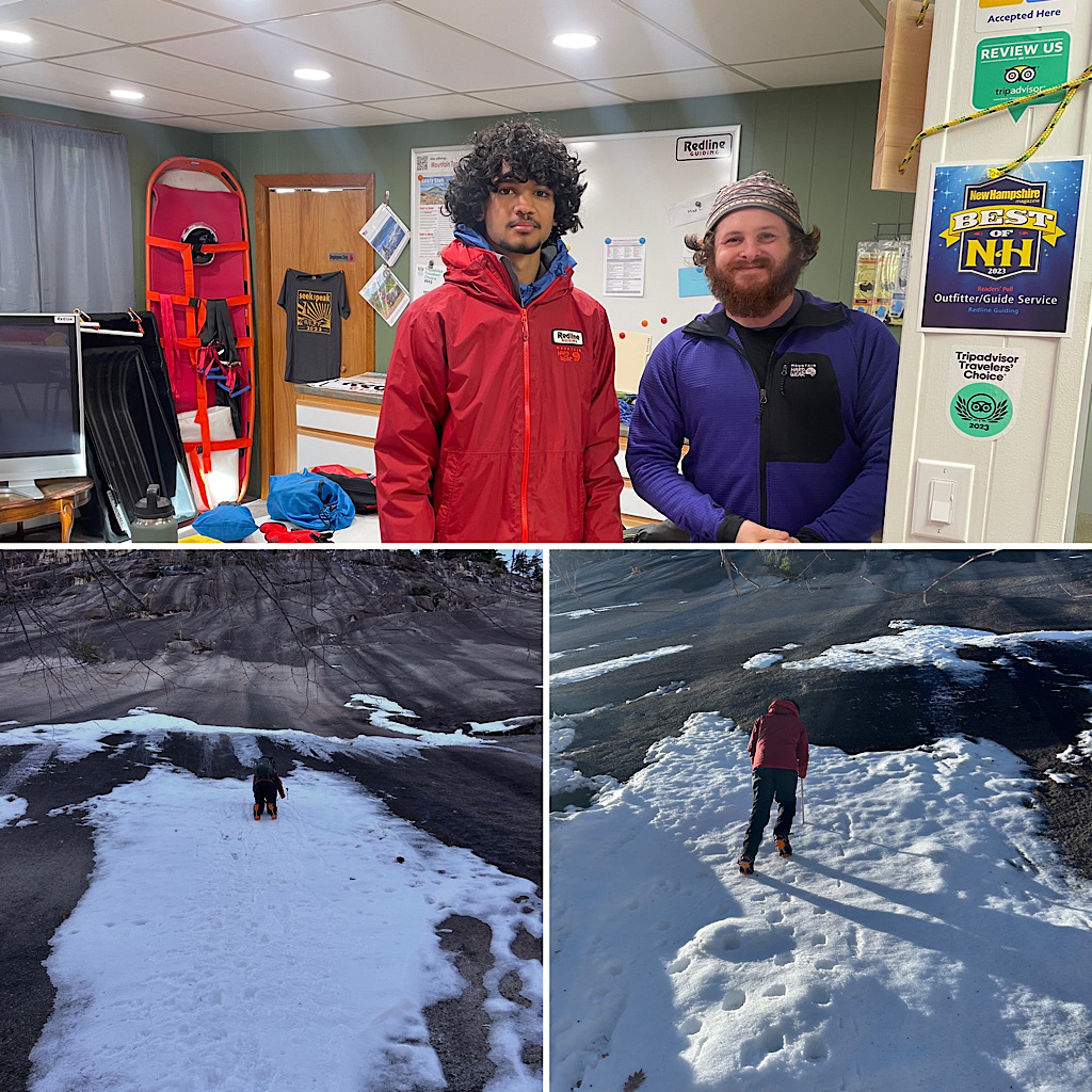 The winds on Mt Washington can best even the toughest hikers and climbers. Experience can help a little, knowing there be some reprieves, such as those found in the “shadow of the cone,” as some say. Strength and toughness can help, too. But Mt Washington will always win when it unleashes its worst weather. Humans can only take so much and that mountain reminds us often that it has so much more to give. Today was no different as the team led by Redline Guide Erik Samia found out atop Lion Head. Like other groups seen on the mountain today, they threw in the towel and let them mountain win another victory. That said, they did have fun and the experience on day two of our program is indelible. What follows is a short summary from Erik along with few photos from both days.