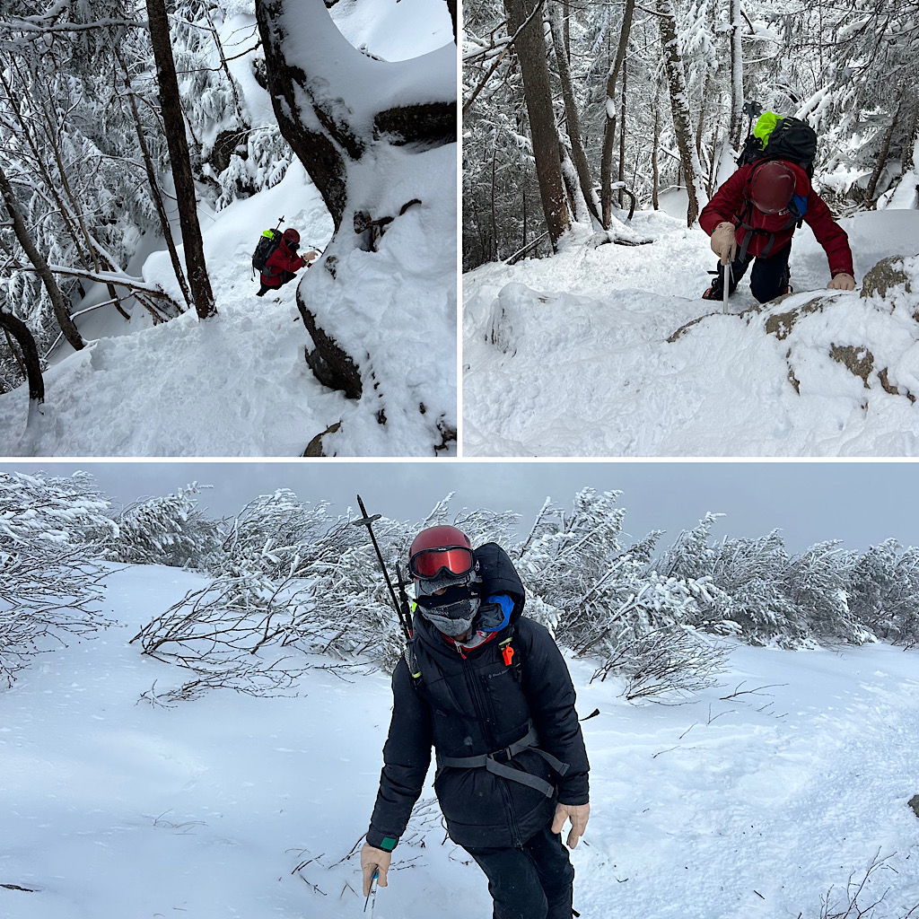 This being our guest’s first winter experience, he did awesome! He was a quick learner with a positive attitude and although the weather and wind was brutal today, he keep going. No parties summited due to wind today so Lion Head was a high as anyone got, including our guest. The past two days from learning mountaineering skills and applying them the next day on Mount Washington was an amazing start for our guest’s winter hiking career. We hope to see him back in the White Mountains soon! —Erik