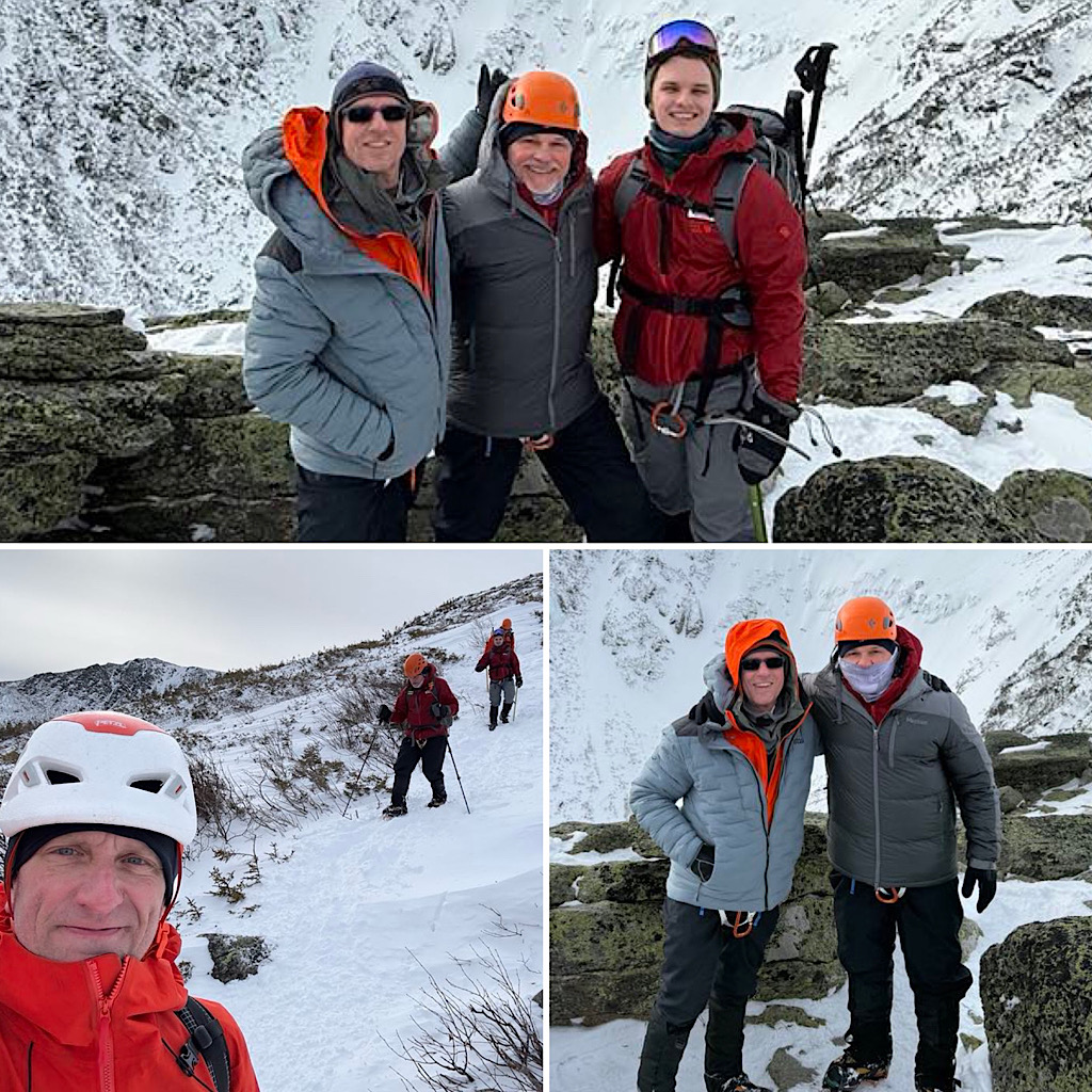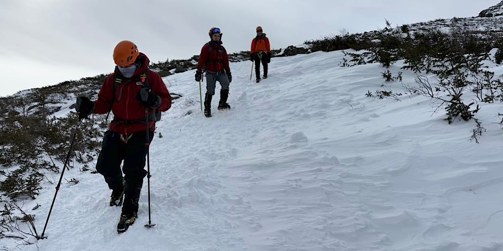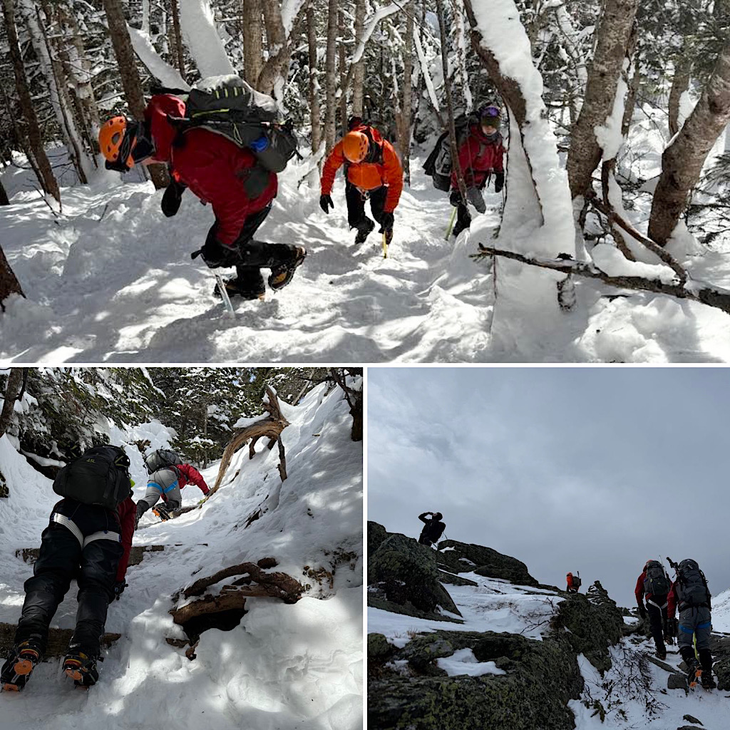 Most of the group was up from Rhode Island, except one who hailed from Massachusetts. In a nutshell it was a friends and family group coming together for an outdoor adventure. Specifically they came up to the Mt Washington Valley to get some basic winter skills and some mountaineering skills training on day one while taking on Mt Washington on day two. Our pretty standard two-day offering. They didn’t hit the summit-summit but settled for Lion Head. This was due to timing and pace, but the mountain was ready to allow it if they wanted it, though they would need to “boogie.” That said, according to Redline Guide Glenn Van Neil, they all had a great time, they stayed safe, and are ready to return to try again at a later date. And that, above all else, is the point.