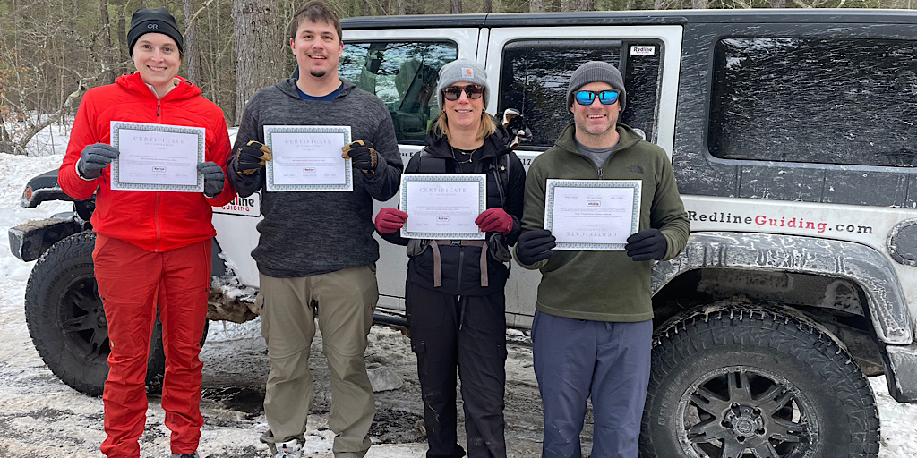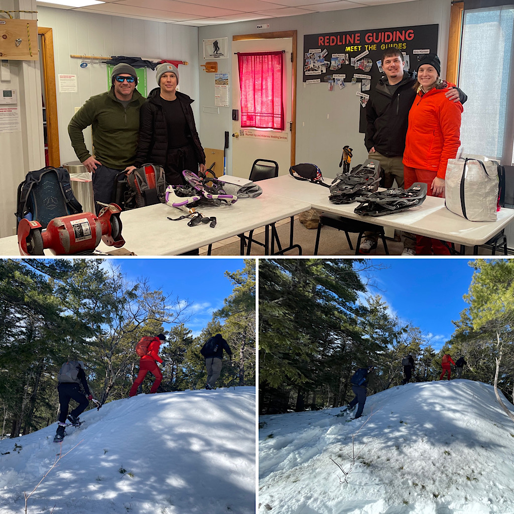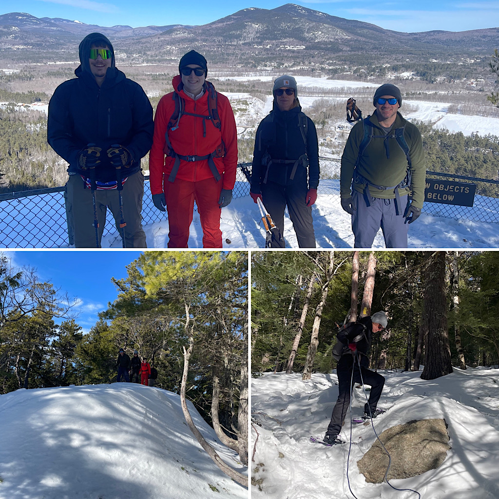 Five people were supposed to join this class but one succumbed to a flu-like illness making its way through the northeast so only four made it. This Hike Intro (winter version) Course was a fun and informative class and everyone had a terrific day. The forecast called for clouds but full sun and pleasant temps were the order of the day. Leading was Redline Guide Mike Cherim with Rosie as his co-lead. Here are a few photos!