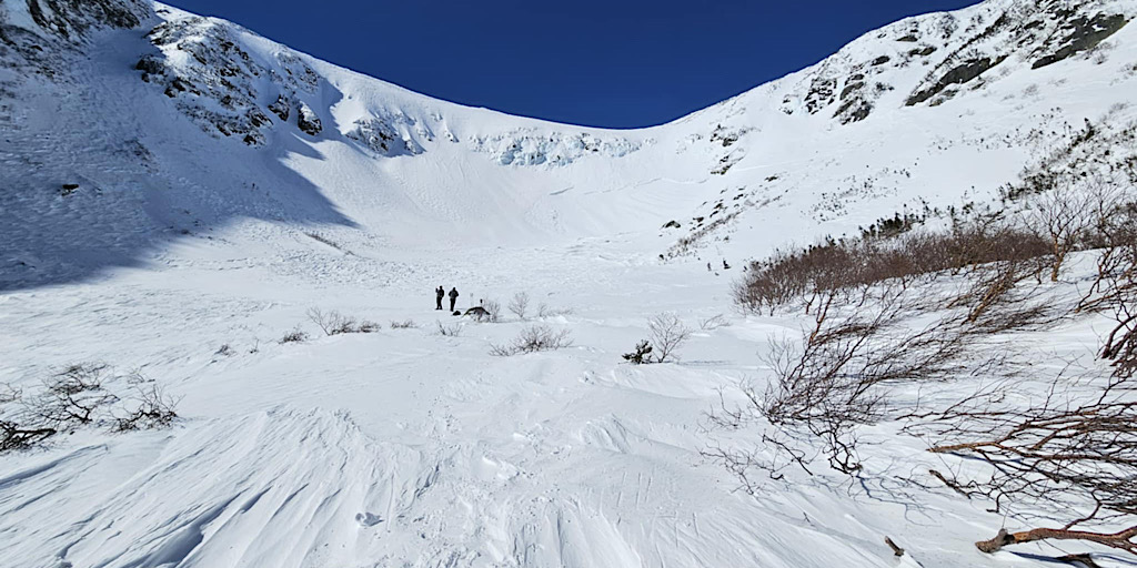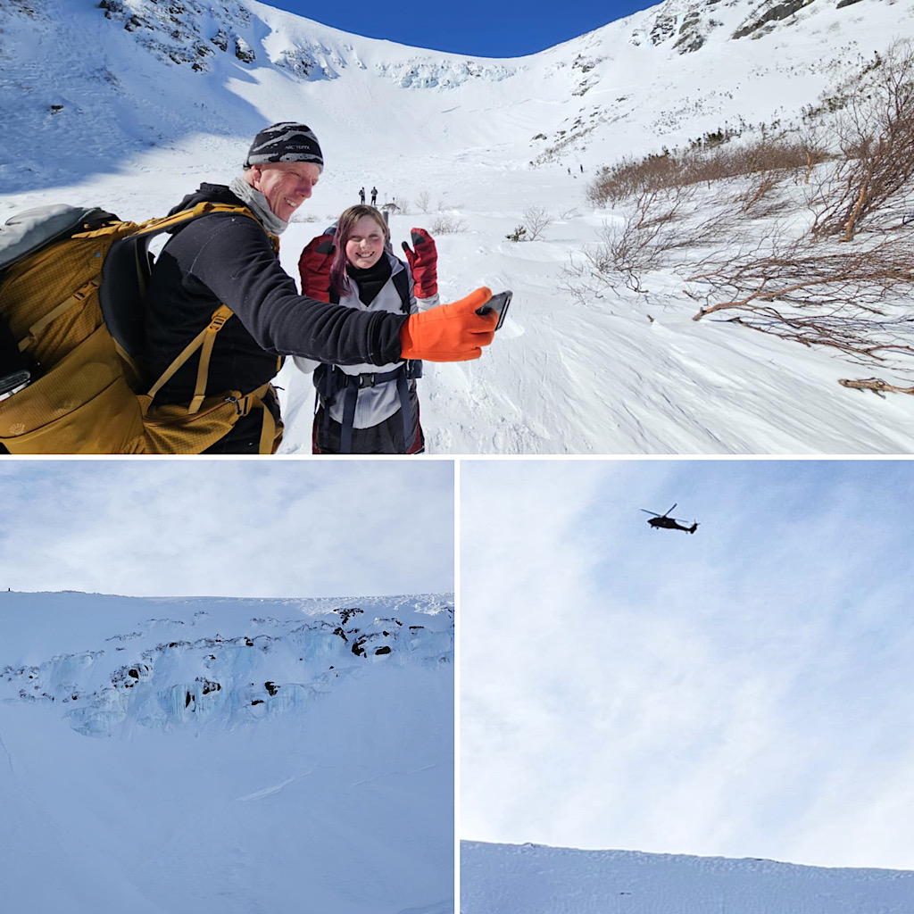 On tap this year was to partake in our winter Mt Washington program for the first two days of their time with us. This consisted of Winter Skills and Mountaineering Skills on day one, then an ascent of Mt Washington via the winter route of the Lion Head Trail on day two. The third day of their visit was unspecified but was either going to be something wild or something tame. As it turned out tame was preferred. The day was spent learning new things in the sunshine in Tuckerman Ravine and watching the skiers.