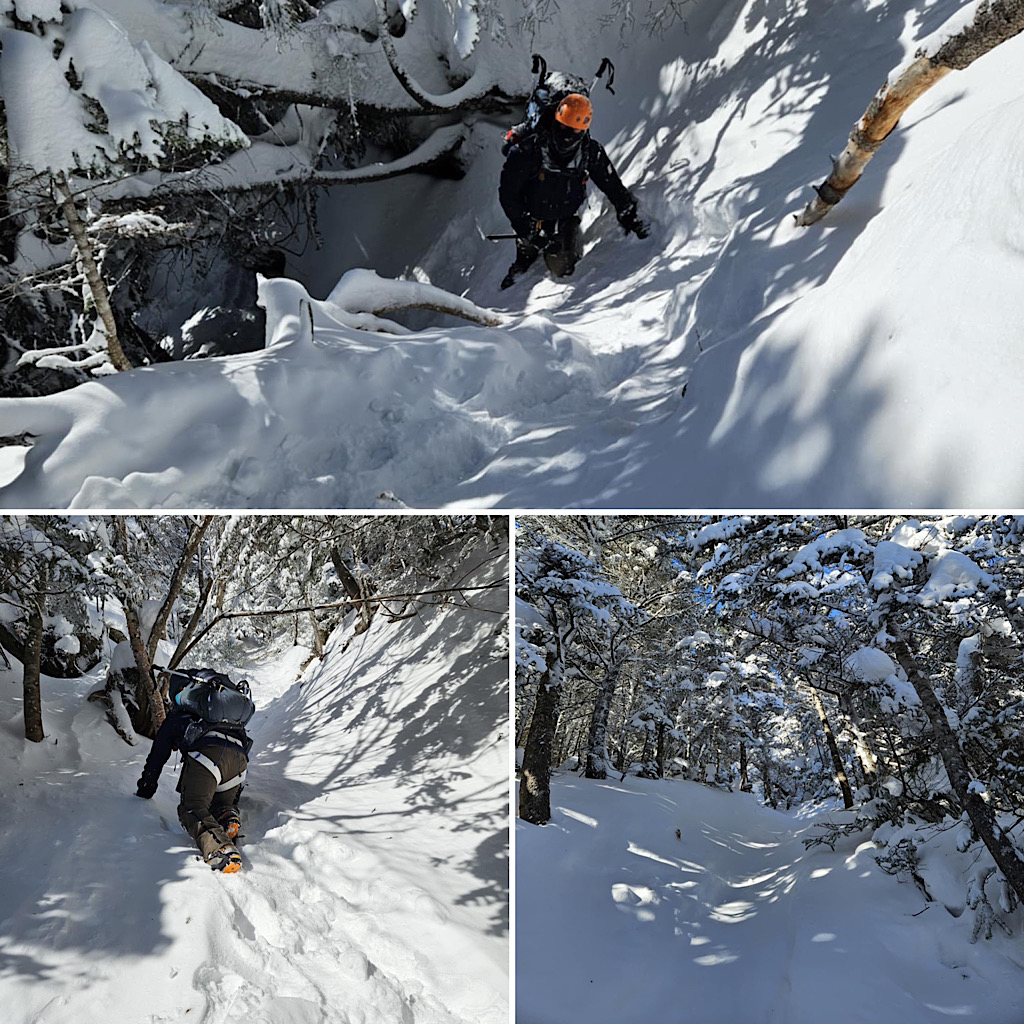 Sometimes the weather on Mt Washington is harsh. So much so mountaineers from all over the planet visit this mountain to train and test their tolerance for the hell the mountain can unleash. Other times Mt Washington is home of the world’s prettiest weather. On this day it was both. Harsh and beautiful. Cold, windy, and quite spectacular. That said, it all started down low with an important day of training before delving into the potentially deadly, otherworldly paradise. This being part of our two-day Winter Mt Washington program. On lead for this single guest epic was Redline Guide Debra McCown. She took a few photos of both days, as follows:
