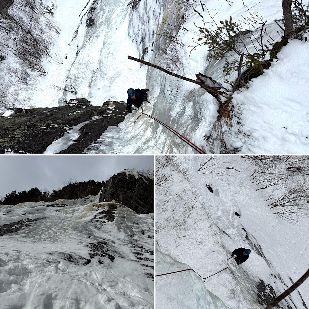 Is child care interfering with your ice climbing? Try what this couple did: Day one mom (and a friend) headed out for a day of climbing on the ice while dad watched the kids. On day two mom watched the kids while dad went out on his own ice adventure. Quite the solution if you ask us, offering something to everyone. Leading both days was Redline Guide Glenn Van Neil. What follows are some of the photos he took.