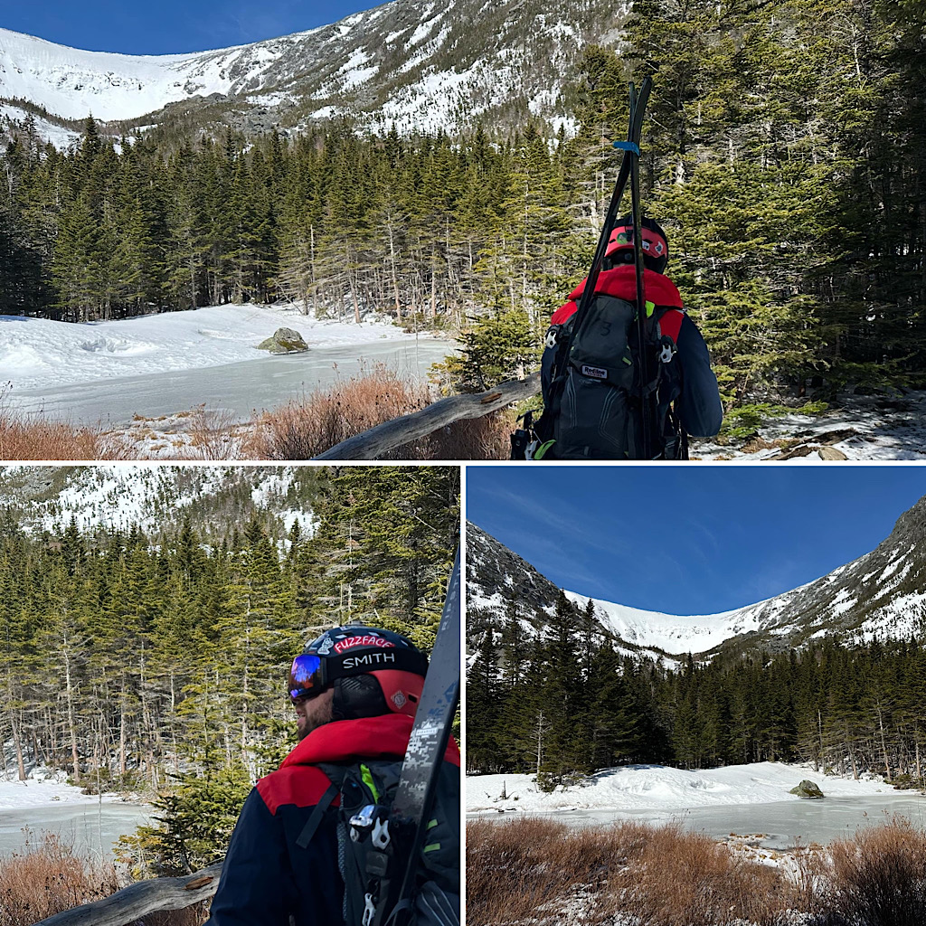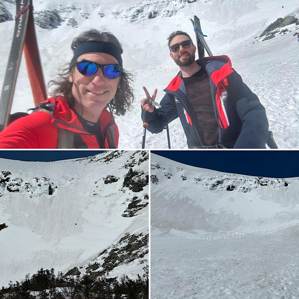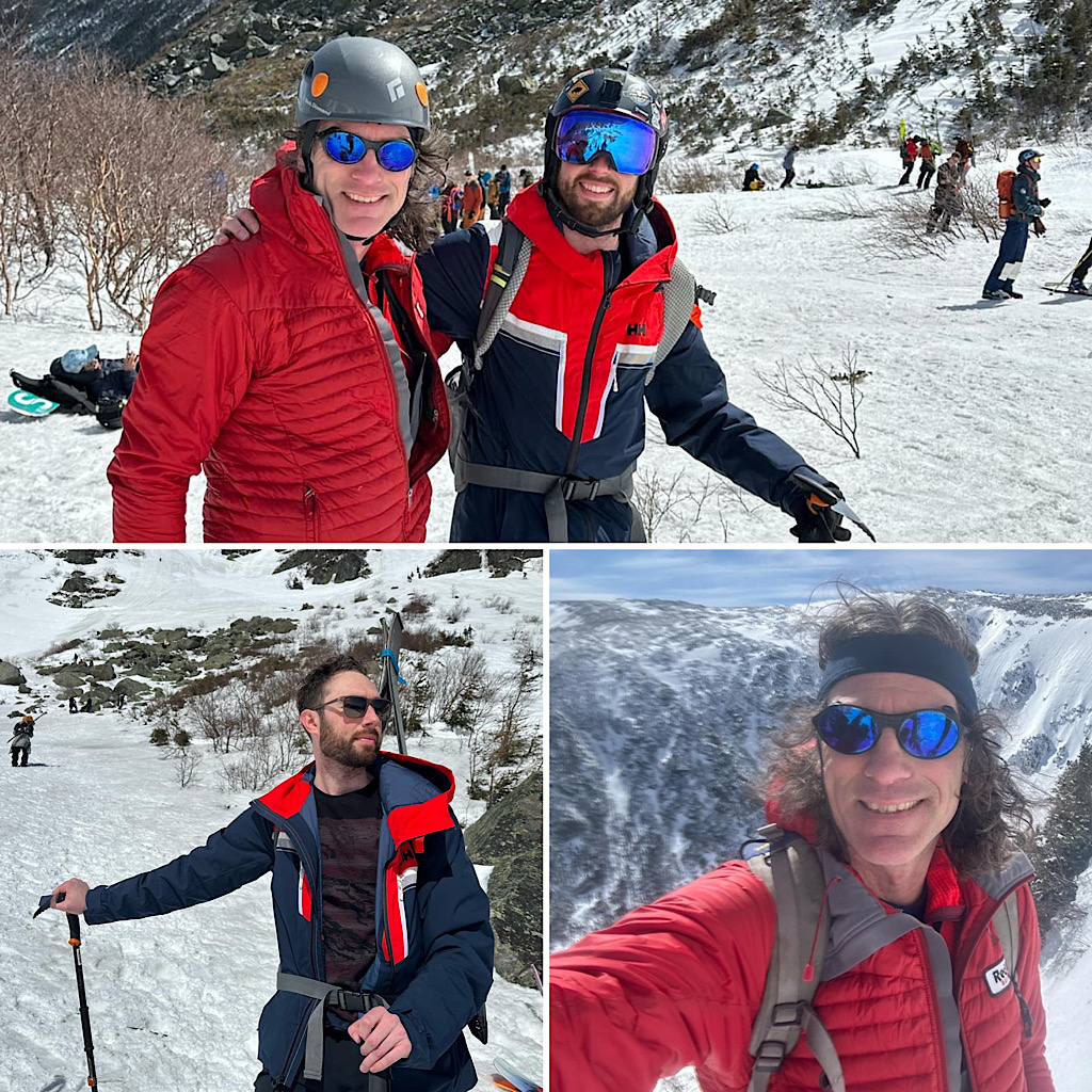 The last ski trip featured gorgeous weather and this backcountry ski tour was no different, albeit actually spring now. Our guest requested “a dope day” in Tuckerman Ravine and on tap for the day was the line known as Lobster Claw. According to Redline Guide Will Murphy who led this tour, they were also to able include Little Headwall “with some creativity” and the John Sherburne Ski Trail on their exit.