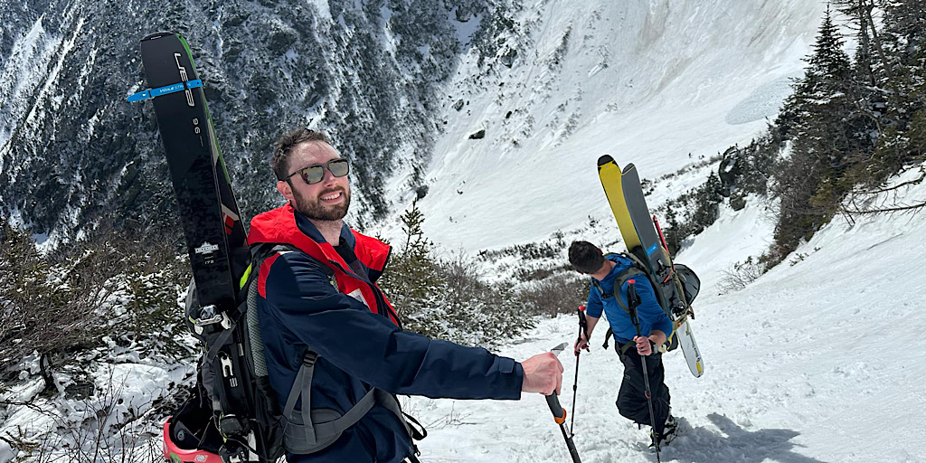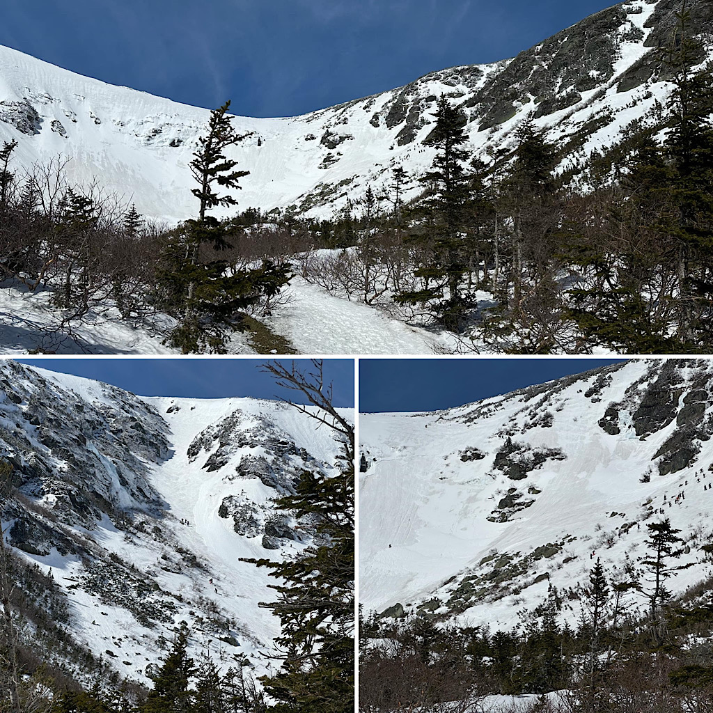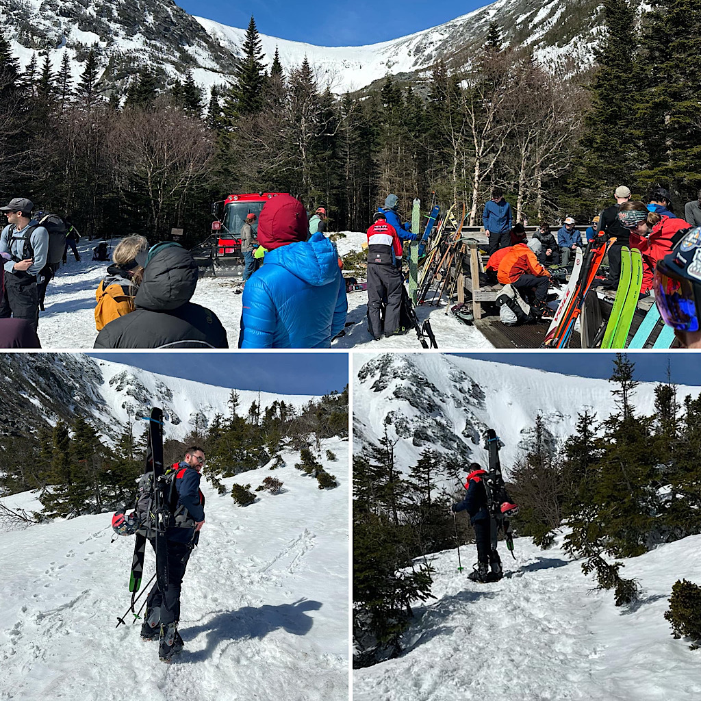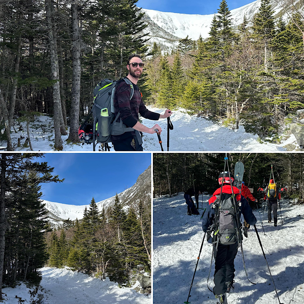 The last ski trip featured gorgeous weather and this backcountry ski tour was no different, albeit actually spring now. Our guest requested “a dope day” in Tuckerman Ravine and on tap for the day was the line known as Lobster Claw. According to Redline Guide Will Murphy who led this tour, they were also to able include Little Headwall “with some creativity” and the John Sherburne Ski Trail on their exit.