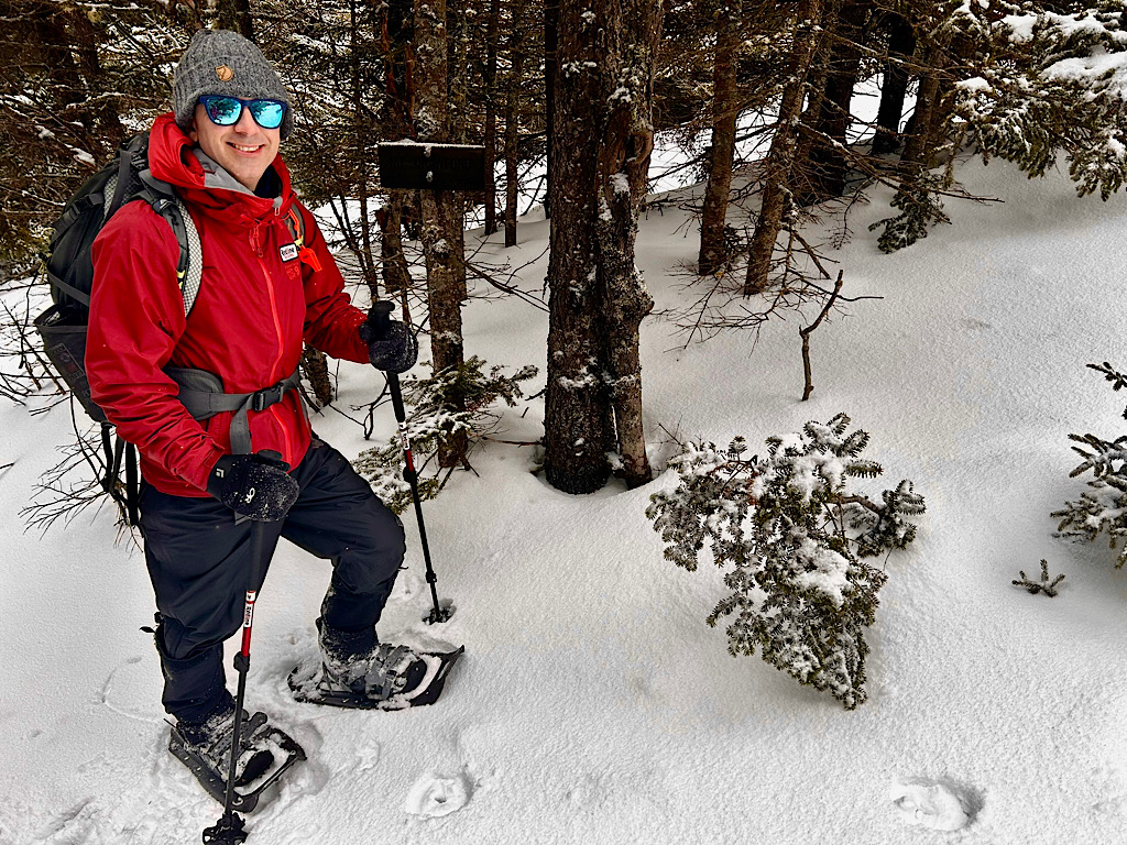 A returning guest who had previously done some skiing in Tuckerman Ravine with us — a teacher — wanted to again have a play day during spring break. This time they sought a different kind of adventure. This time they wanted to partake in a guided half-day hike/snowshoe. Due to the guest’s fitness level and their expectations for the day, we felt the lovely Mt Crawford (one of the 52 WAV peaks) might be a solid choice. Also a solid choice was to put Redline Guide Chase Hall on this mission.