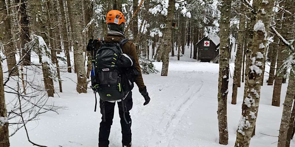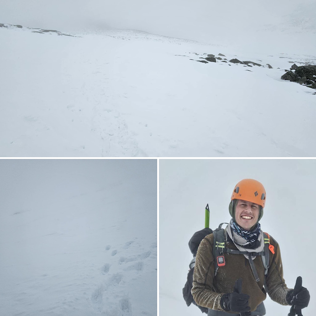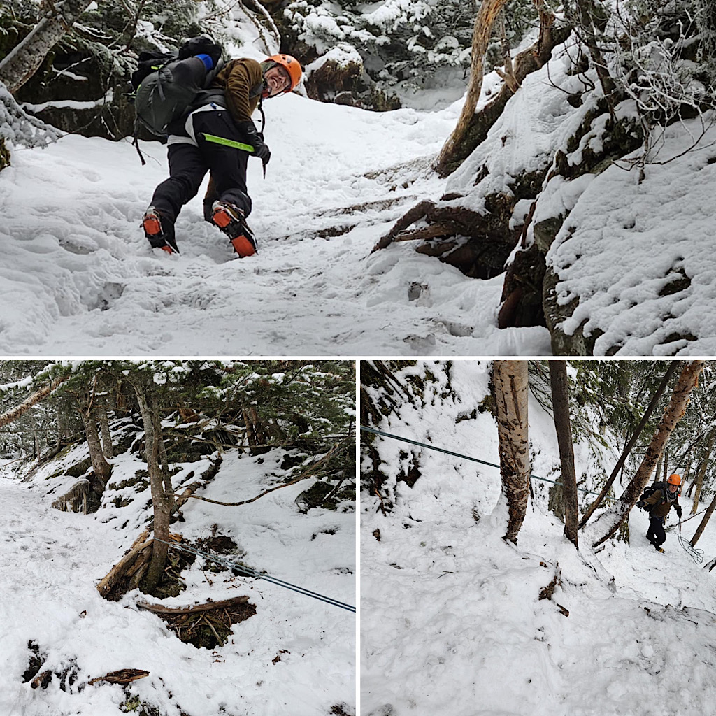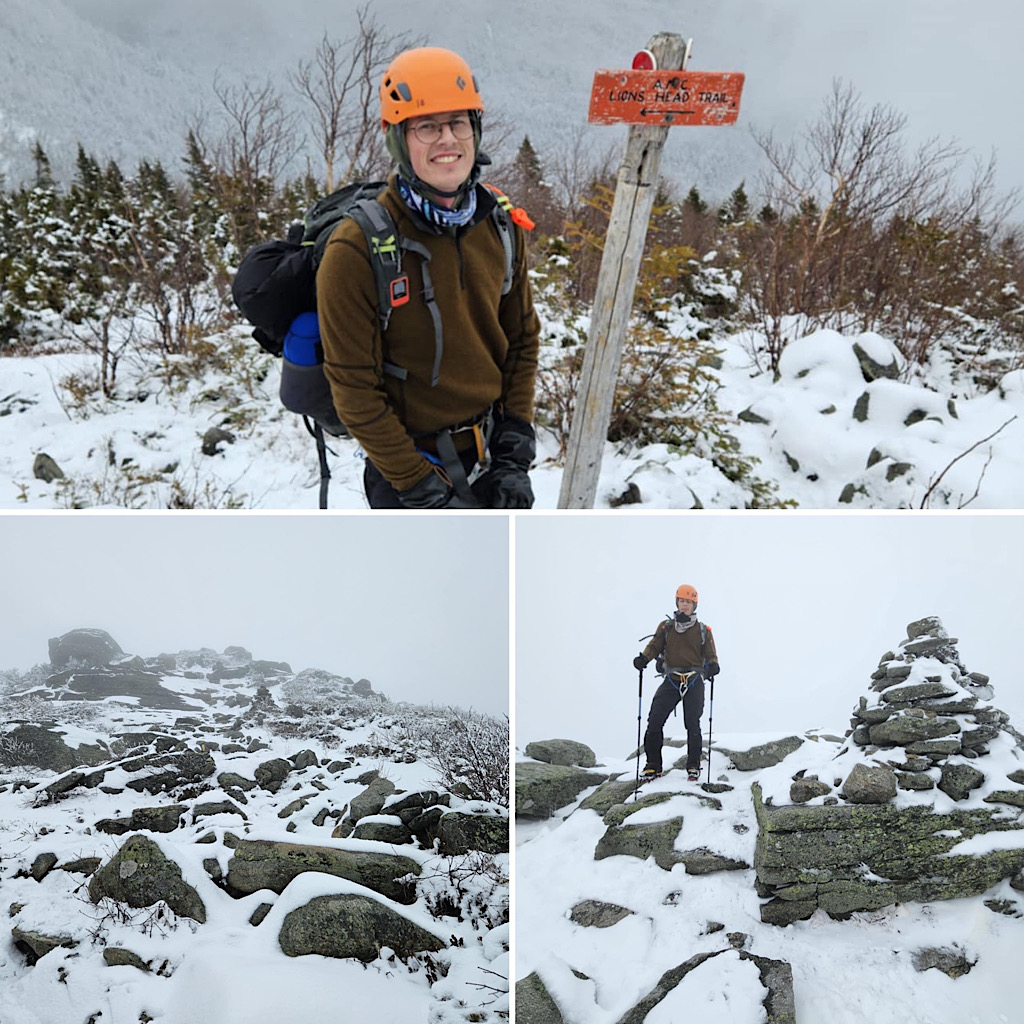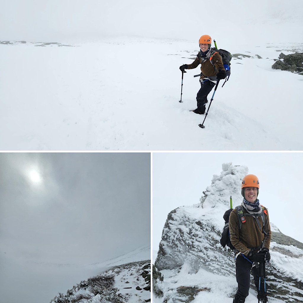 There are four distinct seasons: winter, spring, summer, and fall. But in the mountains, especially, the lines between these seasons can become blurred and indistinct. Case in point, one day it’s warm and sunny and very spring-like, surfaces getting softer as they melt in the sun, and the next day it’s full-on winter, all that melt water frozen creating a treacherous surface to climb on, with long, sliding falls becoming a real threat along with navigating rime-covered rocks in the clouds. Gotta love that mountain weather! It’s all good from our perspective, though. Black Mountain Ski Area in Jackson allows us to use their still-snowy mountain for our training day (thank you), and on-mountain on day two it screams winter and we need that. This allows us to continue offering our Two-Day Winter Mt Washington epics well into the “spring.” Leading this one, all the way to the summit with one guest, was Redline Guide Debra McCown. The photos below she captured along the way.